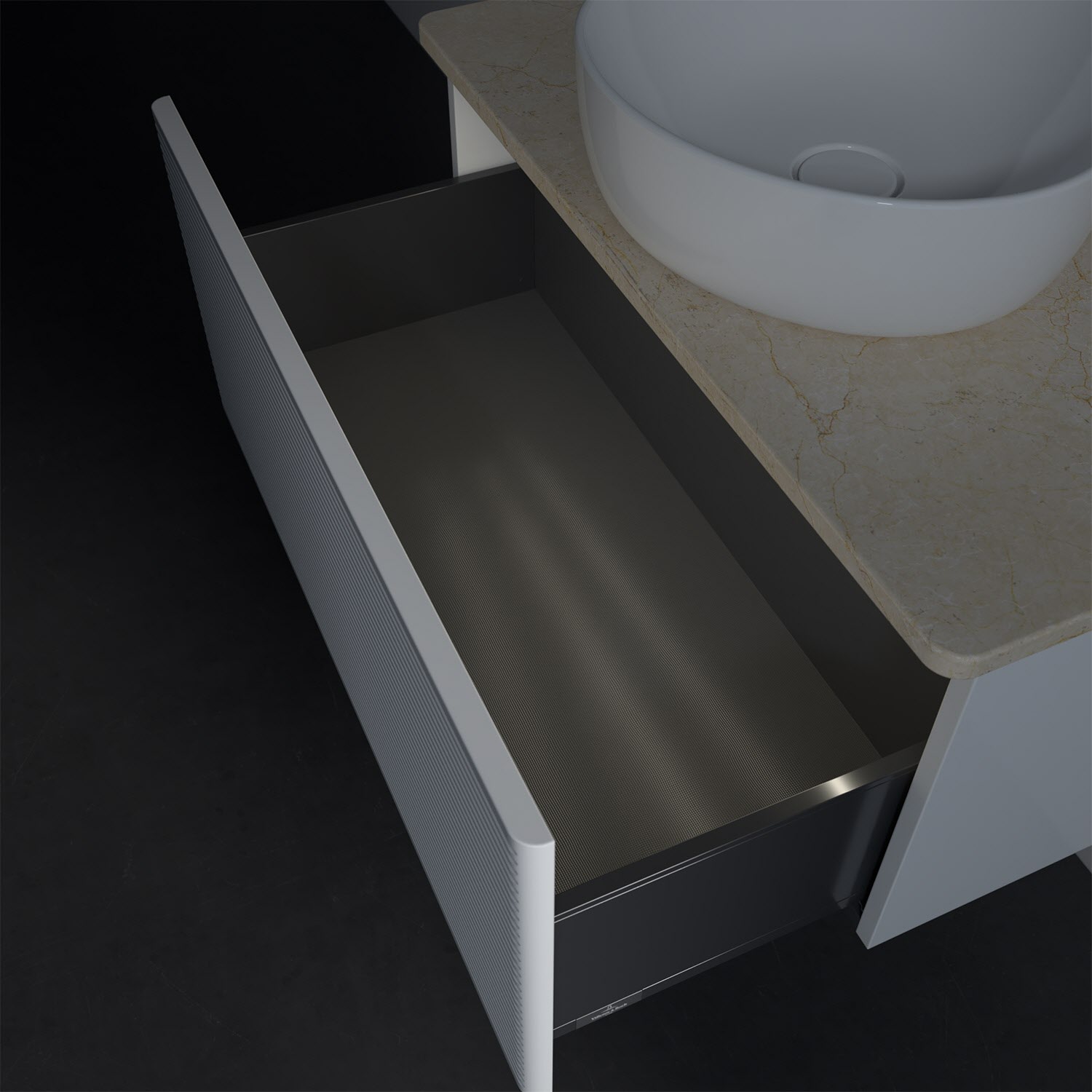 - kein Umfallen oder Verrutschen von Pflegeprodukten in den Schubladen dank rutschhemmendem Boden