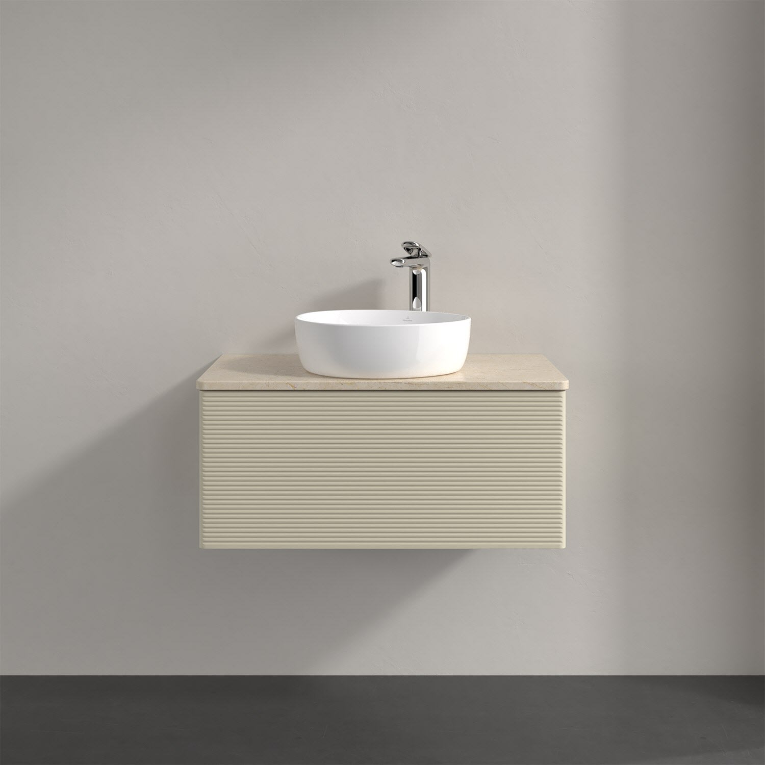 Villeroy & Boch Antao Waschbeckenunterschrank, 80 x 36 cm, 1 Auszug mit LED-Licht, Front mit Struktur, mit Hahnloch