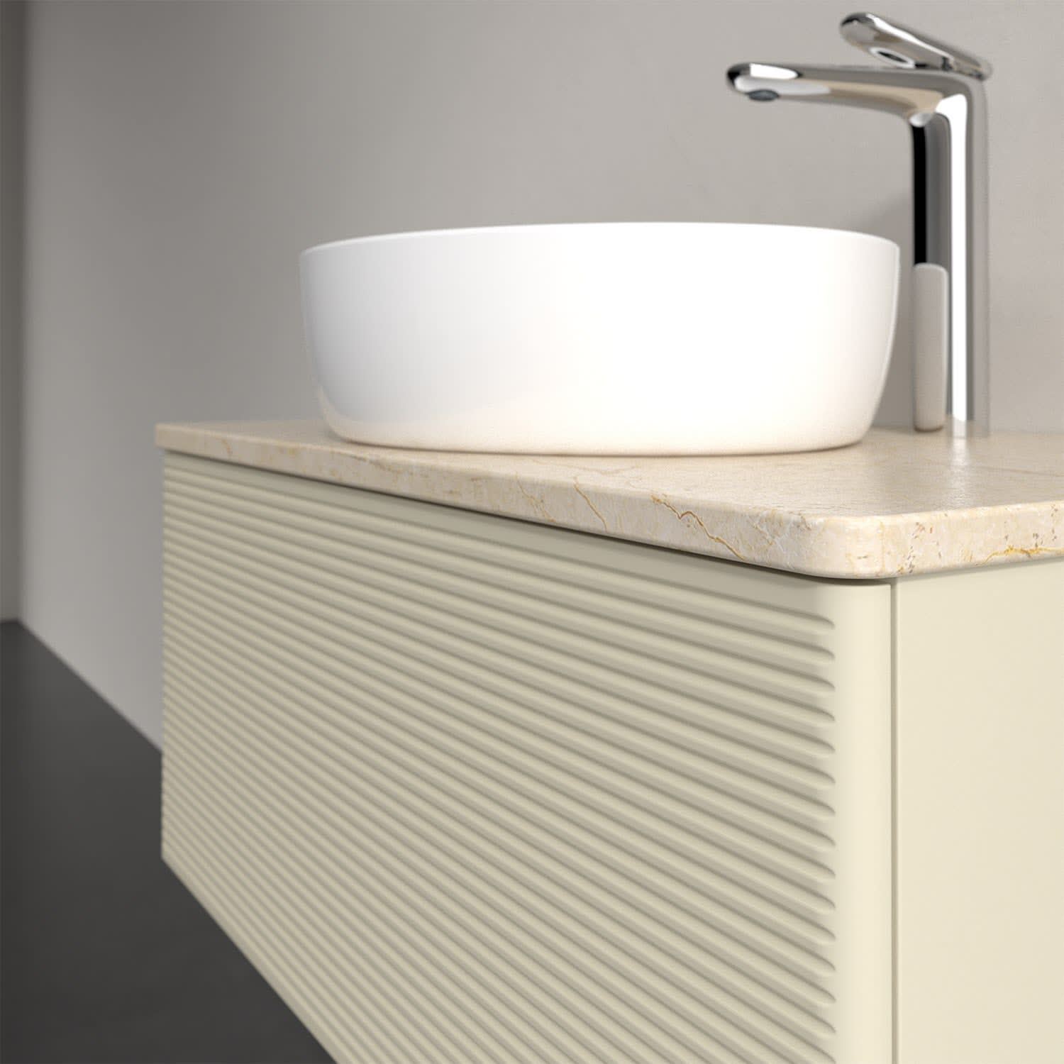 Mit dem wandhängenden Waschtischunterschrank der Kollektion Antao wird ein natürliches und gemütliches Flair am Waschplatz geschaffen. Dafür sorgen die sanfte Formsprache mit abgerundeten Kanten und die strukturierte Front des hochwertigen Badmöbels. Die wichtigsten Badutensilien für die tägliche Routine können seitlich des Waschtischs auf die Waschtischplatte gestellt werden. Ansonsten bietet ein extra hoher Auszug inklusive warmweißer Beleuchtung und Antirutschboden ausreichend Platz für weitere Produkte, die garantiert bleiben, wo sie hingehören. Der Unterschrank verfügt zudem über einen Vollauszug und Selbsteinzug mit SoftClosing Funktion, damit er bequem und mühelos geöffnet und geschlossen werden kann. Gewohnte Qualität von Villeroy & Boch! Für eine besonders leichte Pflege sorgt die mehrschichtig deckend lackierte Oberfläche. Bei der Ausführung in Massivholz wird dank des verarbeiteten Massivholzes jedes Möbel zu einem Unikat, das sich durch das lebendige Naturmaterial durch seine einzigartige Struktur und Maserung auszeichnet.