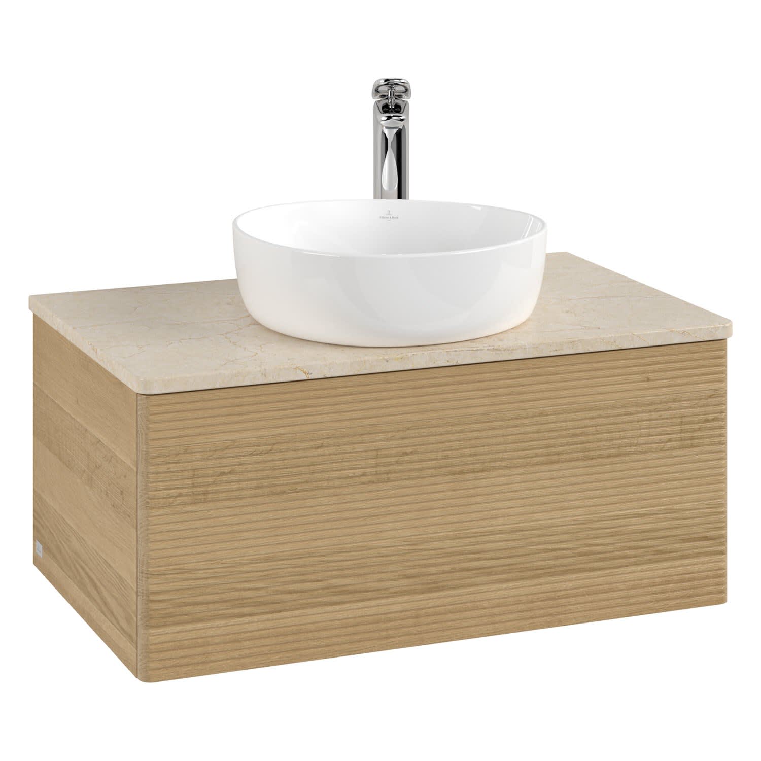 Villeroy & Boch Antao Waschbeckenunterschrank, 80 x 36 cm, 1 Auszug mit LED-Licht, Front mit Struktur, mit Hahnloch