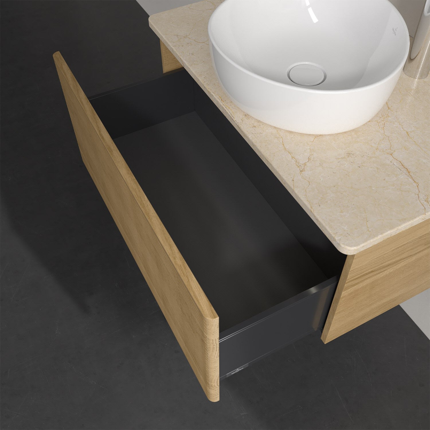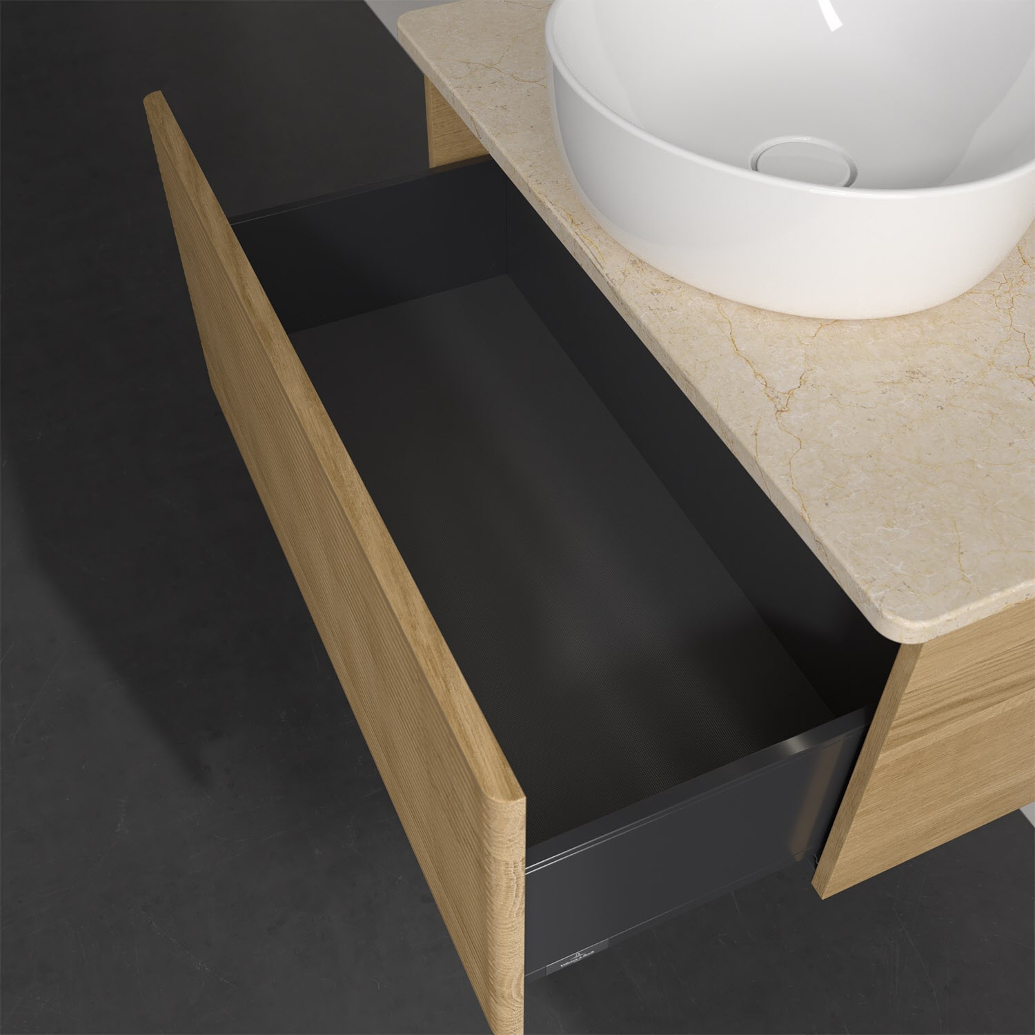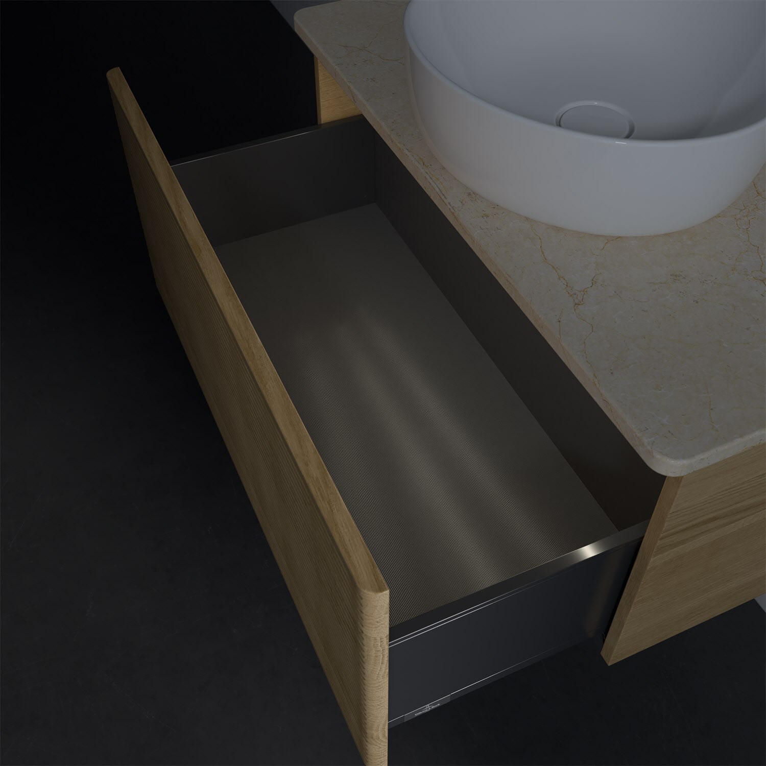 - kein Umfallen oder Verrutschen von Pflegeprodukten in den Schubladen dank rutschhemmendem Boden