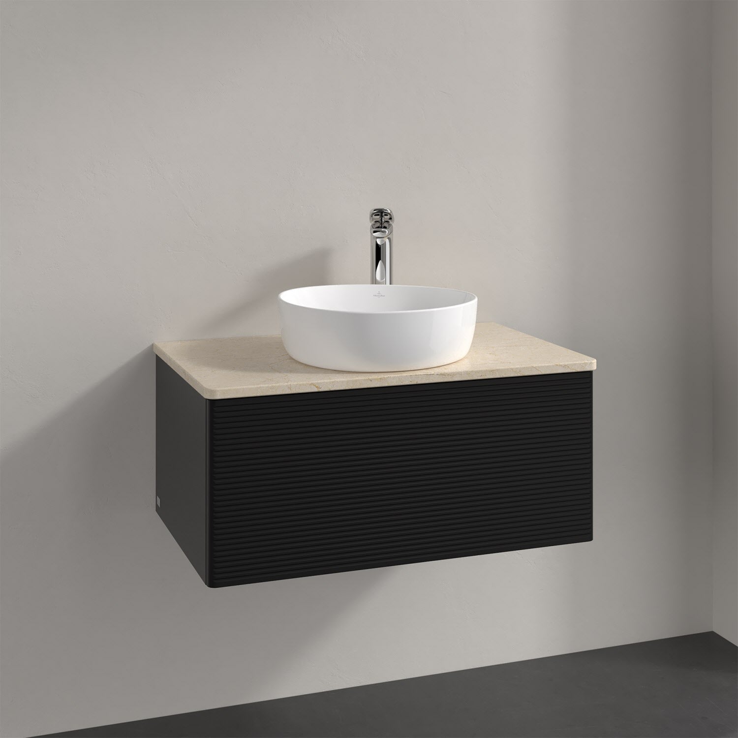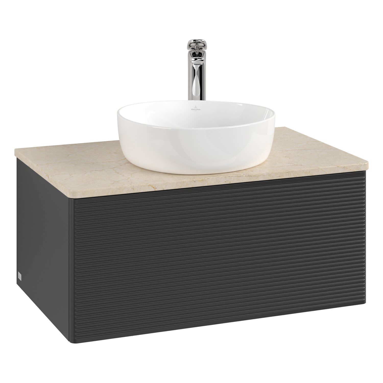Villeroy & Boch Antao Waschbeckenunterschrank, 80 x 36 cm, 1 Auszug mit LED-Licht, Front mit Struktur, mit Hahnloch
