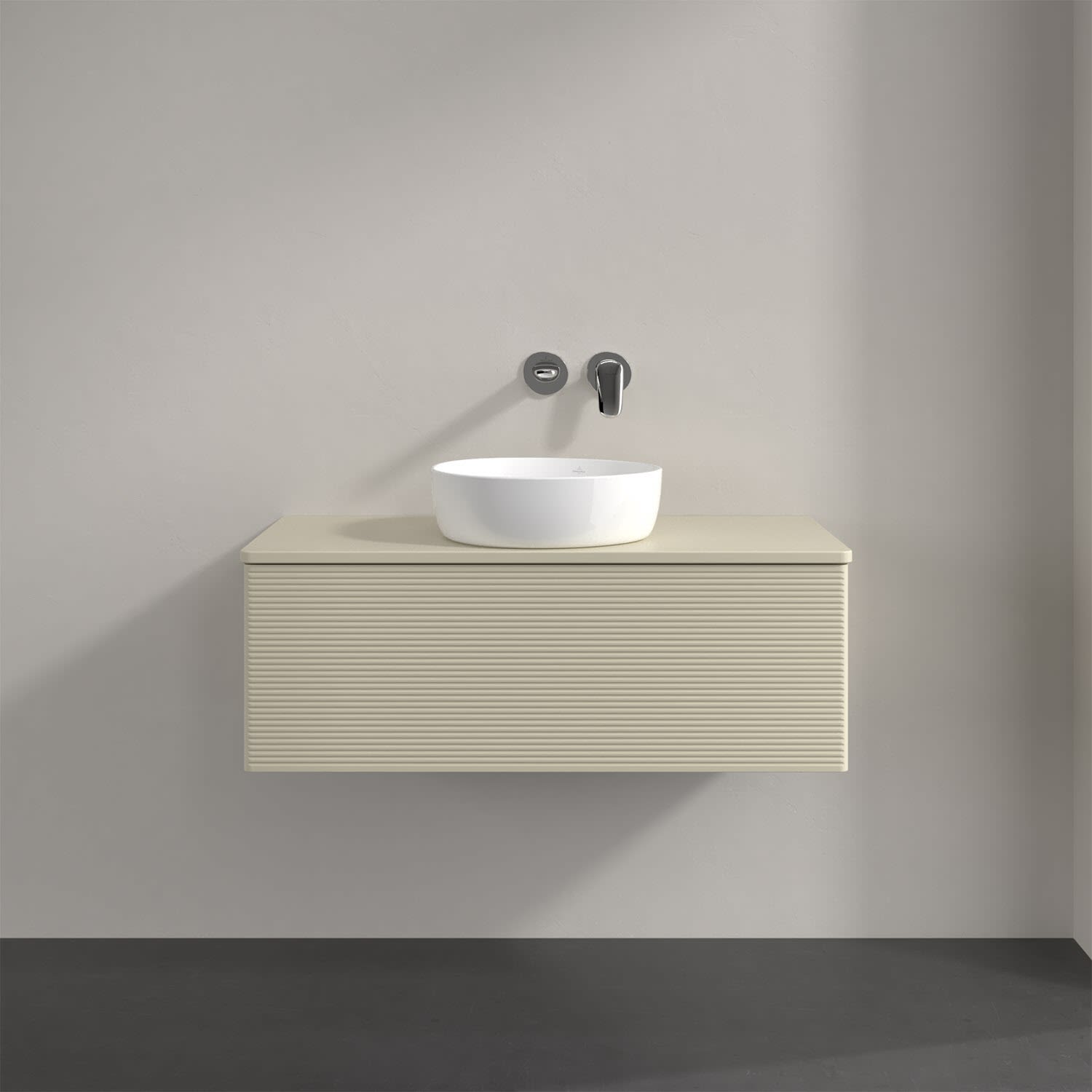 Villeroy & Boch Antao Waschbeckenunterschrank, 100 x 36 cm, 1 Auszug mit LED-Licht, Front mit Struktur, mit Hahnloch