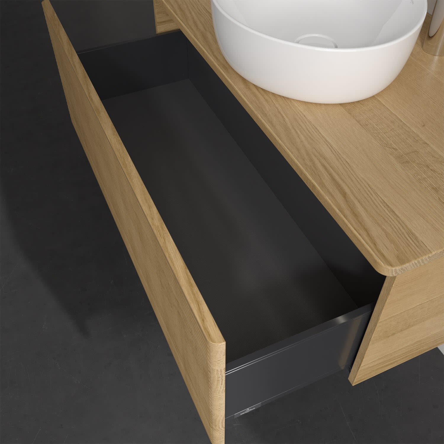 - kein Umfallen oder Verrutschen von Pflegeprodukten in den Schubladen dank rutschhemmendem Boden