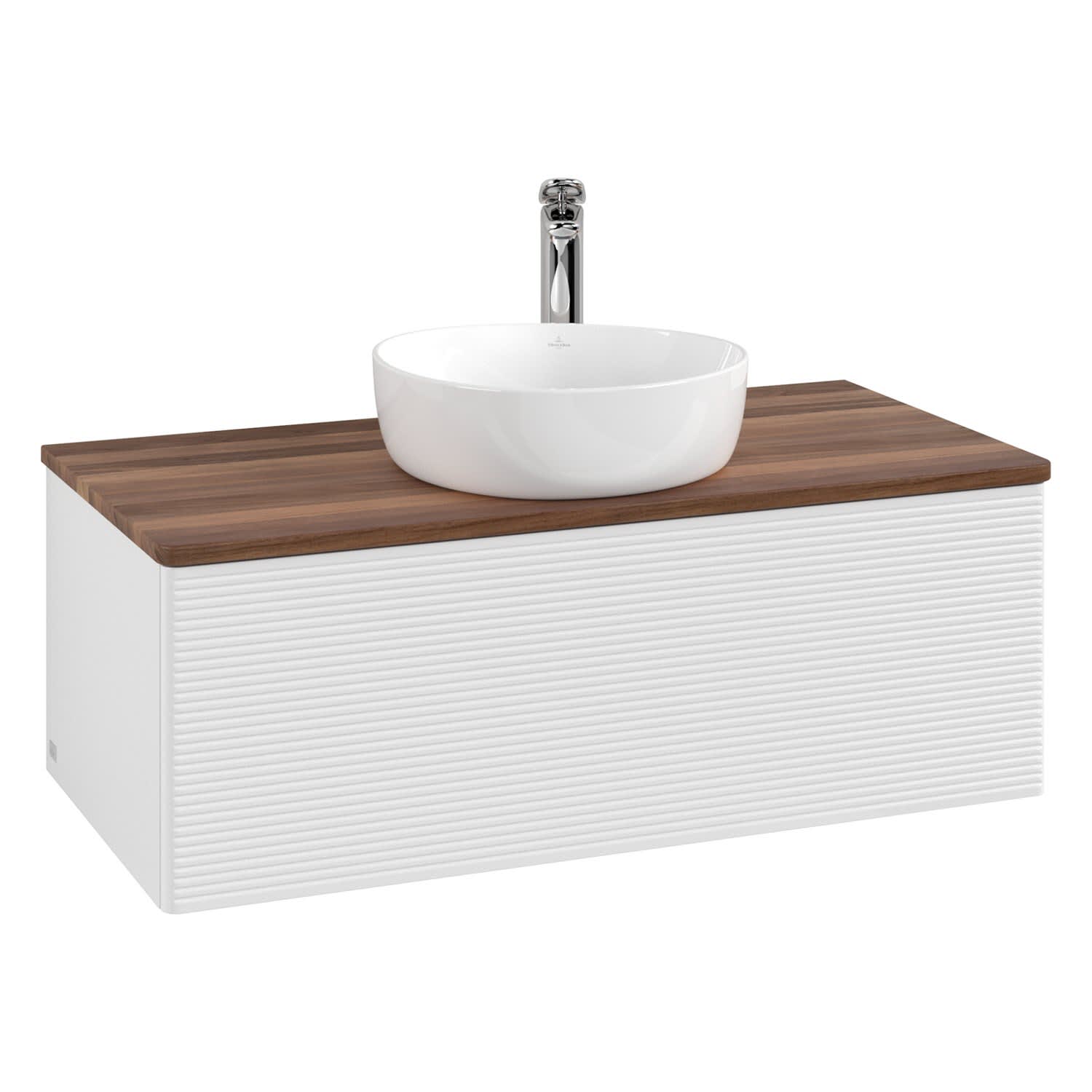 Villeroy & Boch Antao Waschbeckenunterschrank, 100 x 36 cm, 1 Auszug mit LED-Licht, Front mit Struktur, mit Hahnloch
