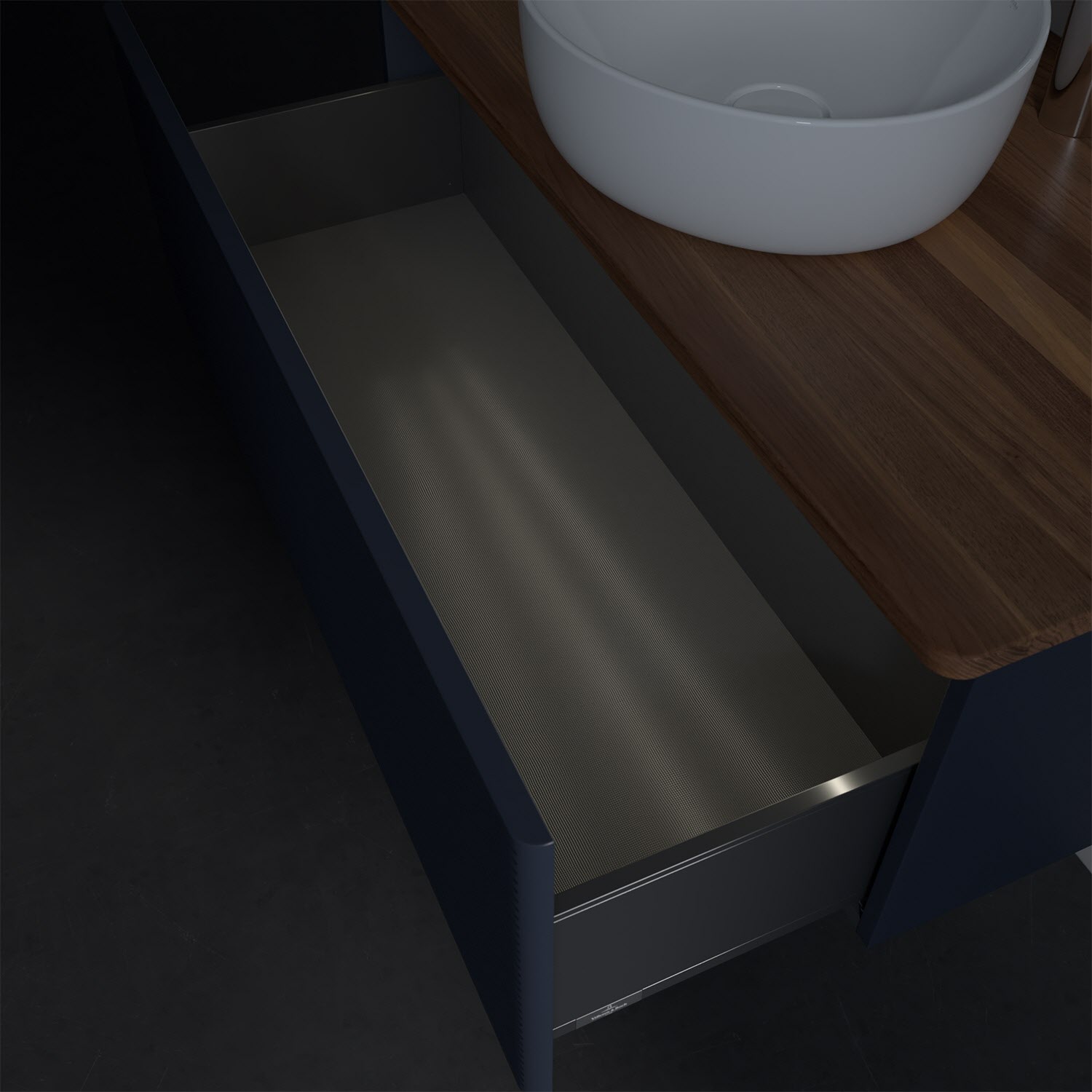 - in Schublade integrierte LED-Leiste mit warmweißem Licht zur Beleuchtung des Innenlebens