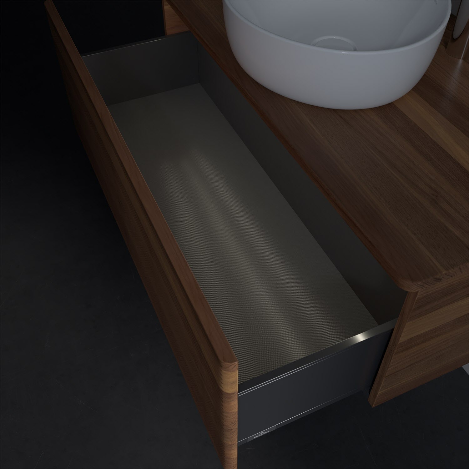 - in Schublade integrierte LED-Leiste mit warmweißem Licht zur Beleuchtung des Innenlebens