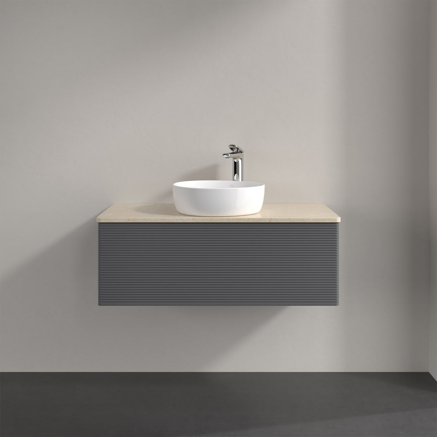 Villeroy & Boch Antao Waschbeckenunterschrank, 100 x 36 cm, 1 Auszug mit LED-Licht, Front mit Struktur, mit Hahnloch