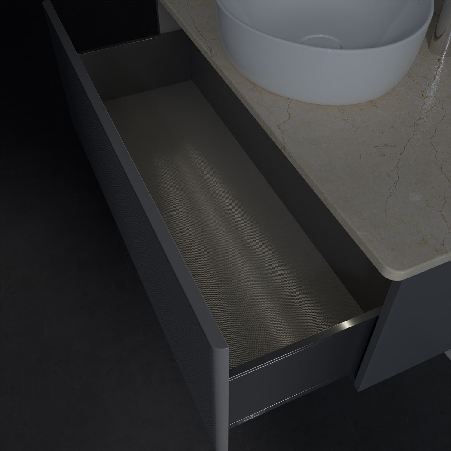 - kein Umfallen oder Verrutschen von Pflegeprodukten in den Schubladen dank rutschhemmendem Boden