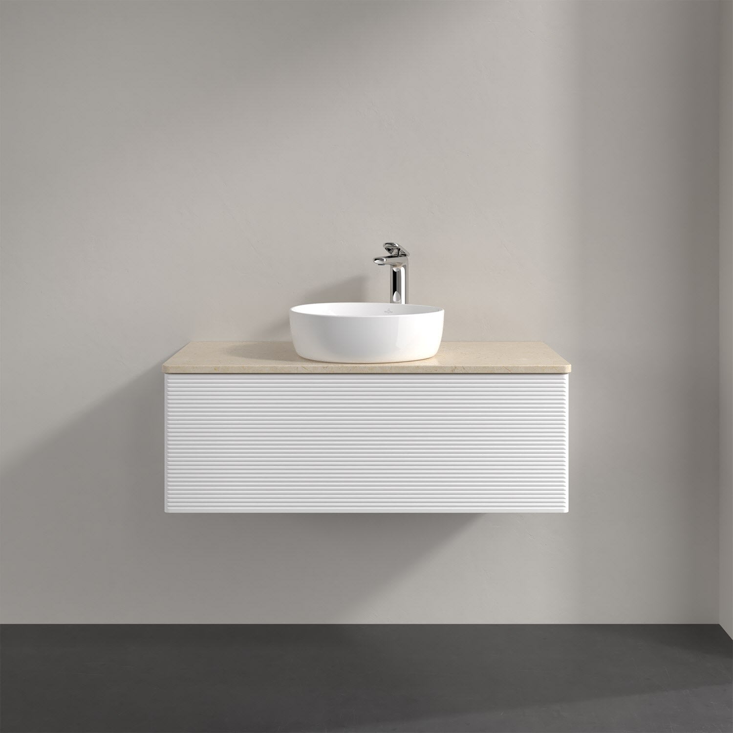 Villeroy & Boch Antao Waschbeckenunterschrank, 100 x 36 cm, 1 Auszug mit LED-Licht, Front mit Struktur, mit Hahnloch