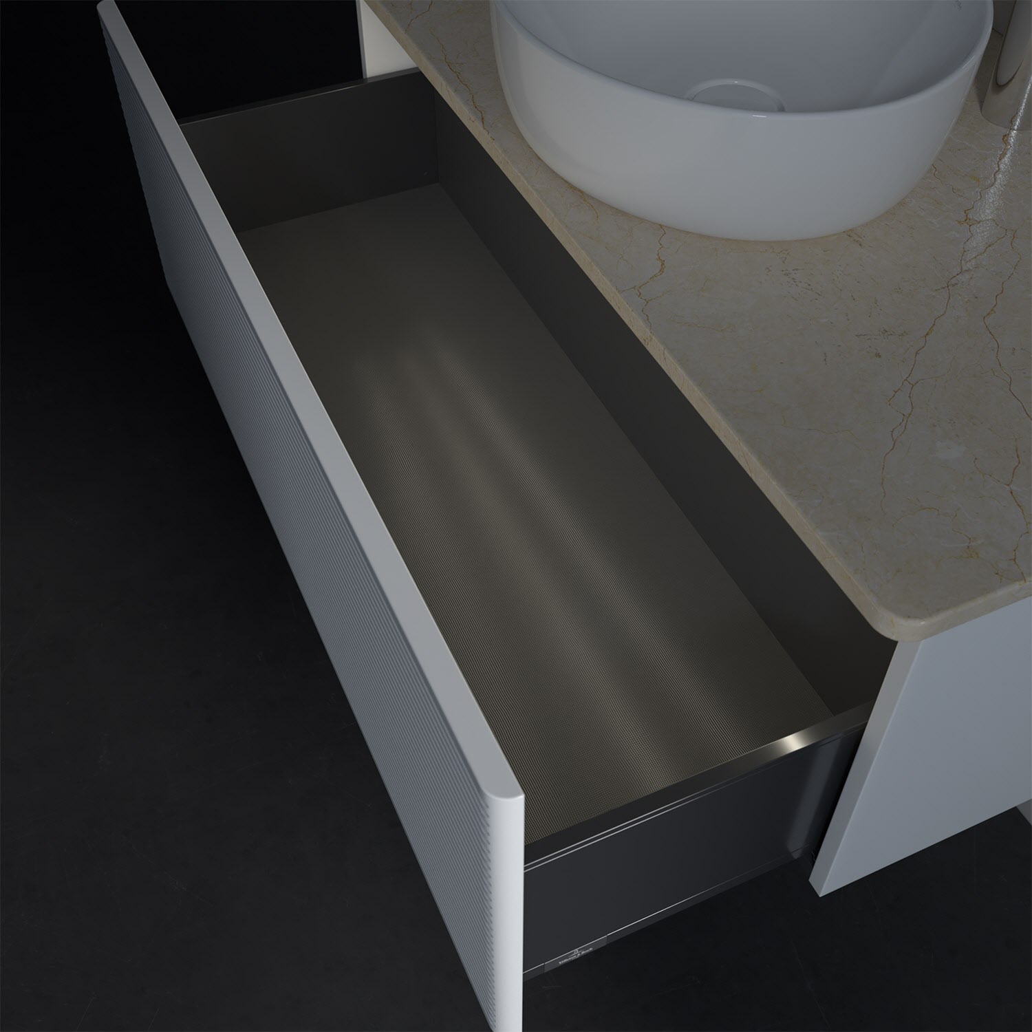 - kein Umfallen oder Verrutschen von Pflegeprodukten in den Schubladen dank rutschhemmendem Boden