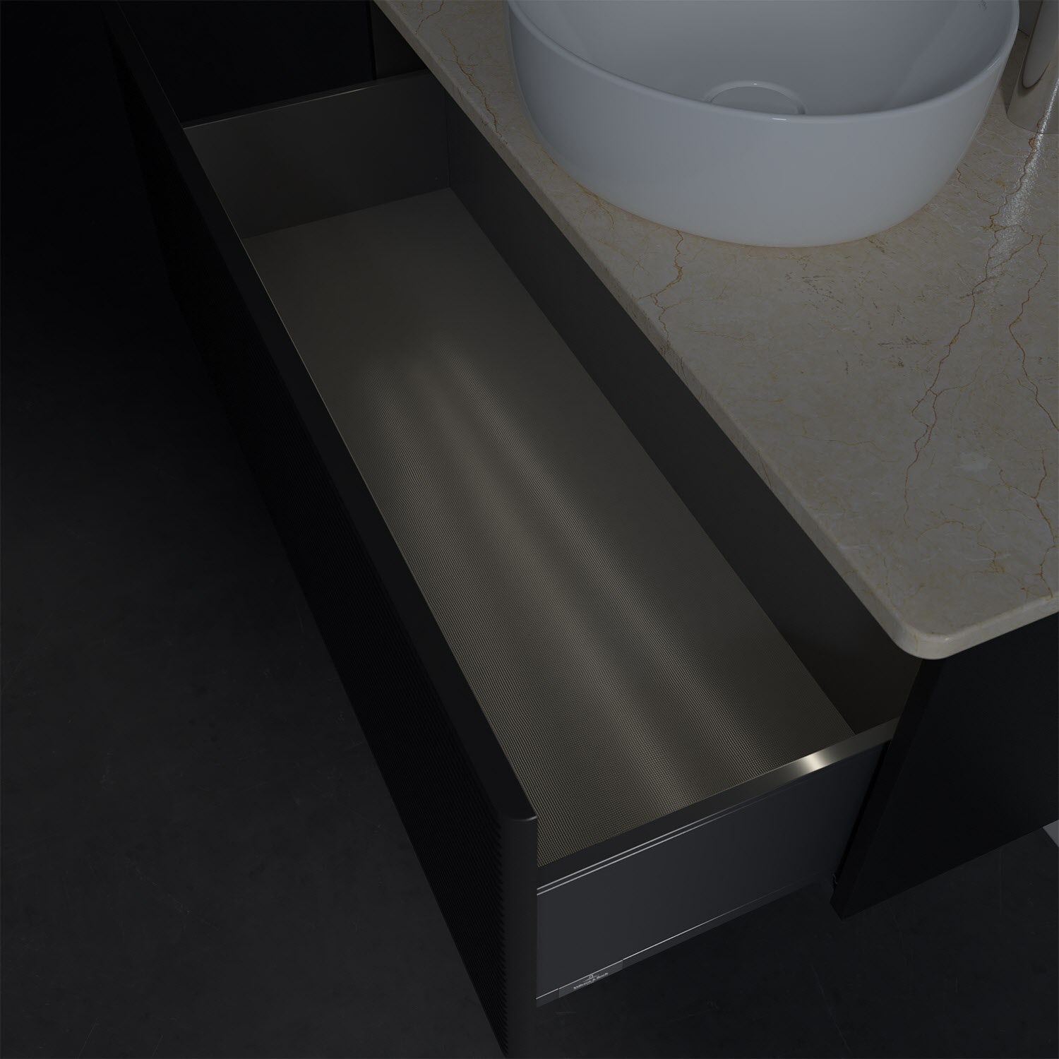 - kein Umfallen oder Verrutschen von Pflegeprodukten in den Schubladen dank rutschhemmendem Boden