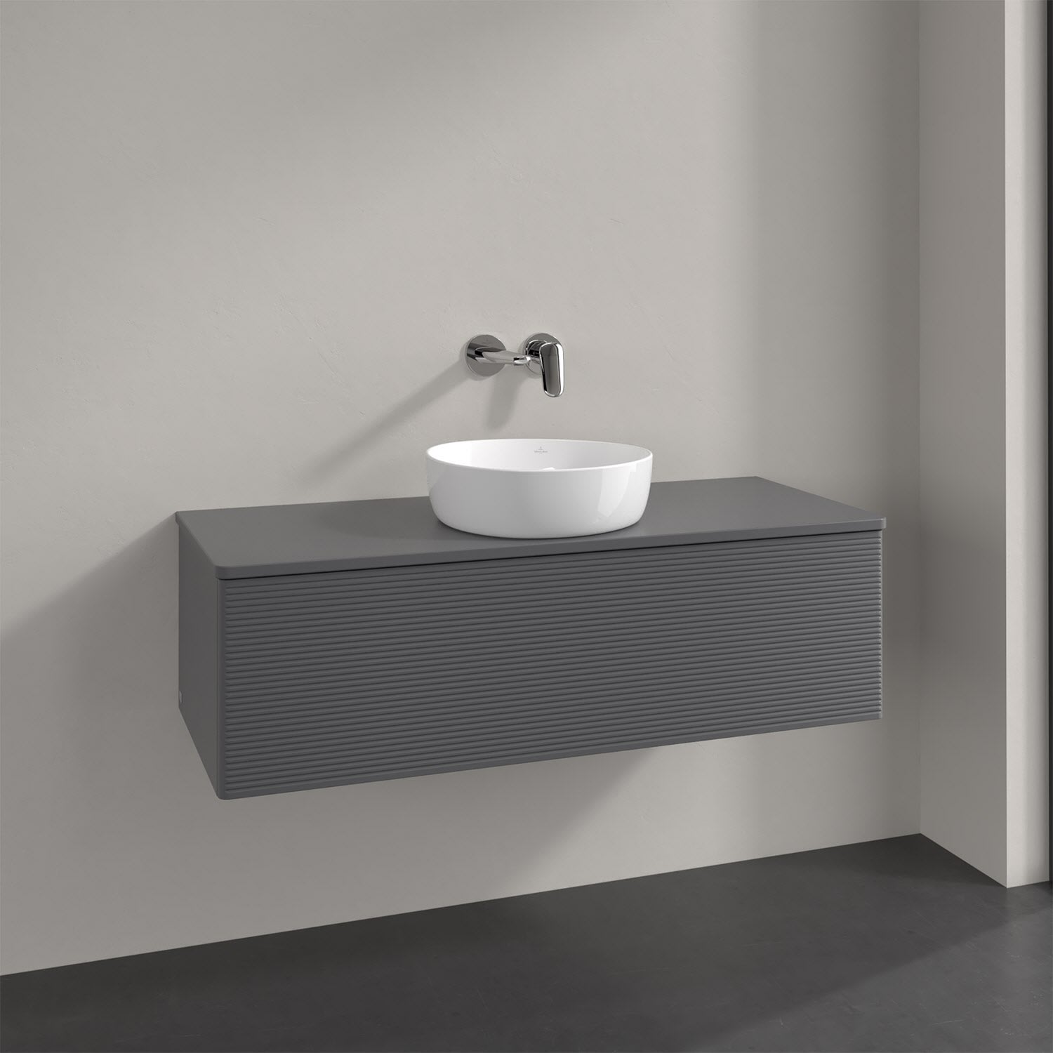 Villeroy & Boch Antao Waschbeckenunterschrank, 120 x 36 cm, 1 Auszug mit LED-Licht, Front mit Struktur, mit Hahnloch, für Waschtisch mittig