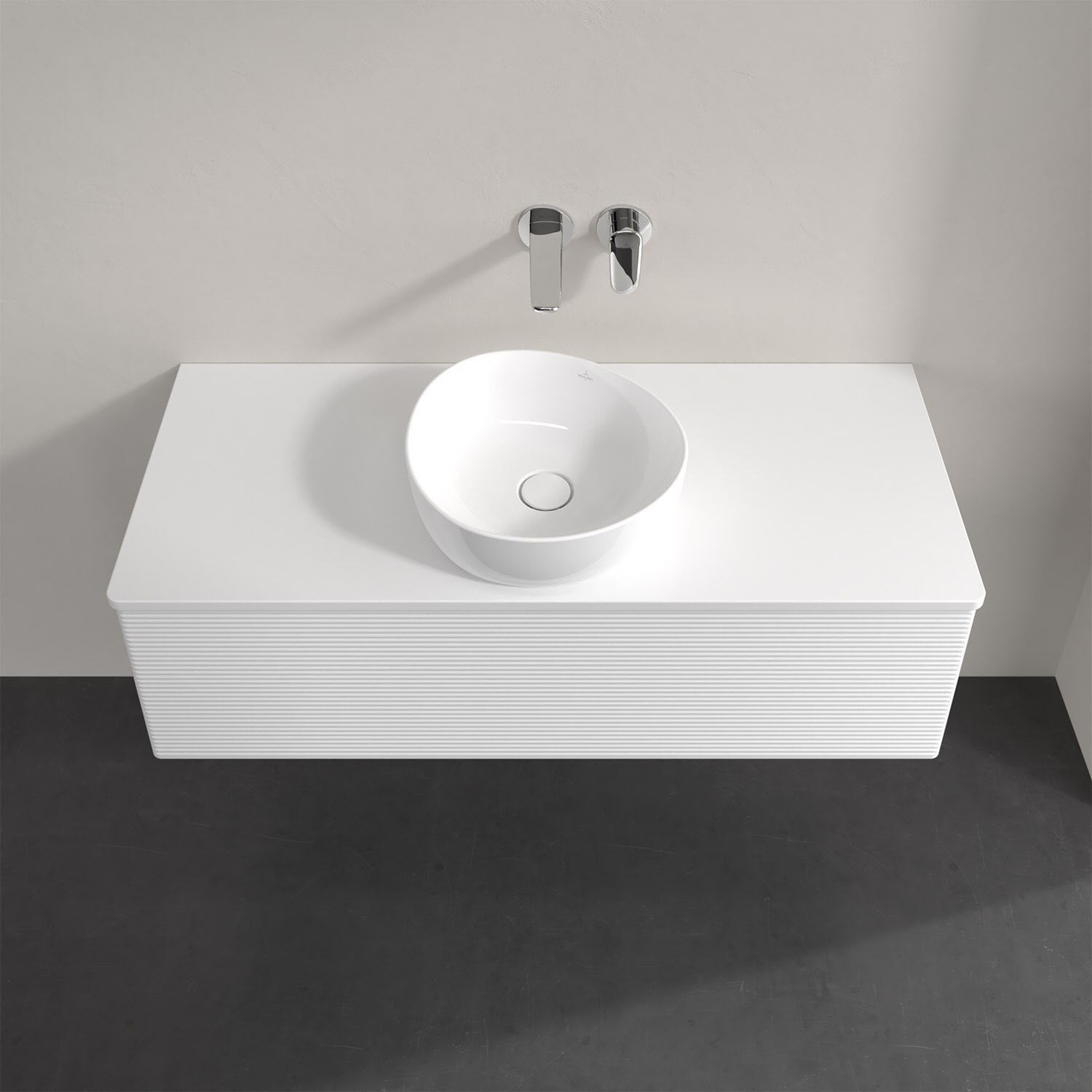 Für diesen Waschbeckenunterschrank stehen Ihnen Aufsatzwaschtische aus verschiedenen Serien zur Verfügung (siehe "Passliste" unter Downloads). Ein ausgewähltes Beispiel finden Sie im Zubehör. Den Waschtisch bitte separat mitbestellen.