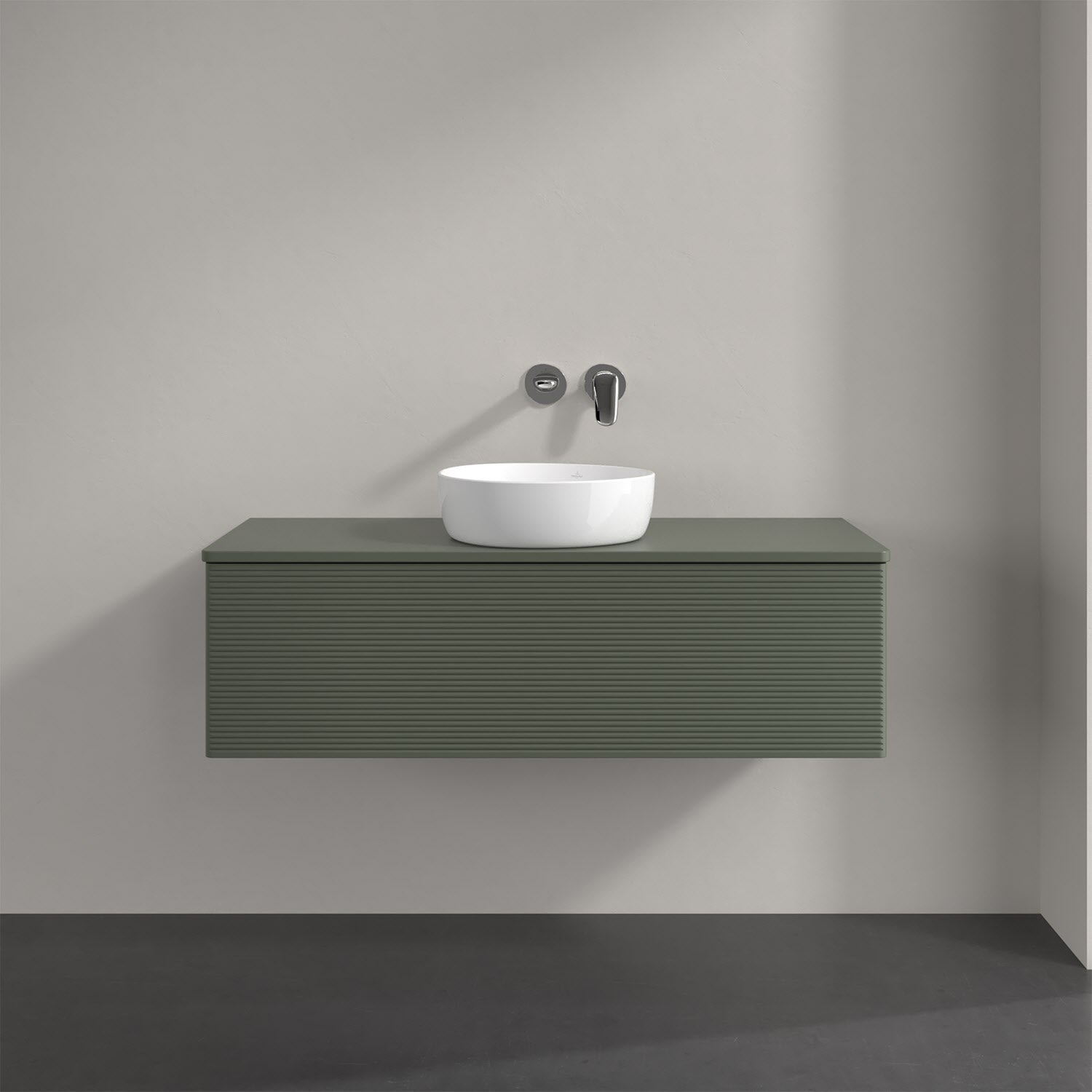 Villeroy & Boch Antao Waschbeckenunterschrank, 120 x 36 cm, 1 Auszug mit LED-Licht, Front mit Struktur, mit Hahnloch, für Waschtisch mittig
