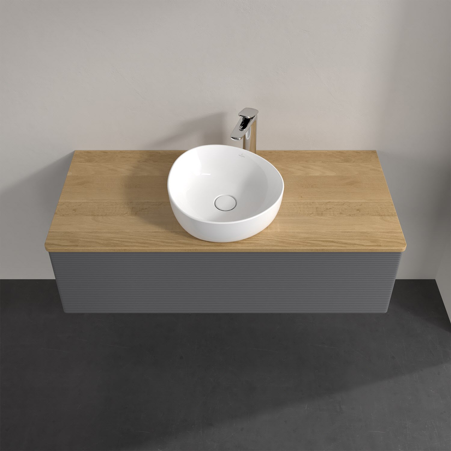 Für diesen Waschbeckenunterschrank stehen Ihnen Aufsatzwaschtische aus verschiedenen Serien zur Verfügung (siehe "Passliste" unter Downloads). Ein ausgewähltes Beispiel finden Sie im Zubehör. Den Waschtisch bitte separat mitbestellen.