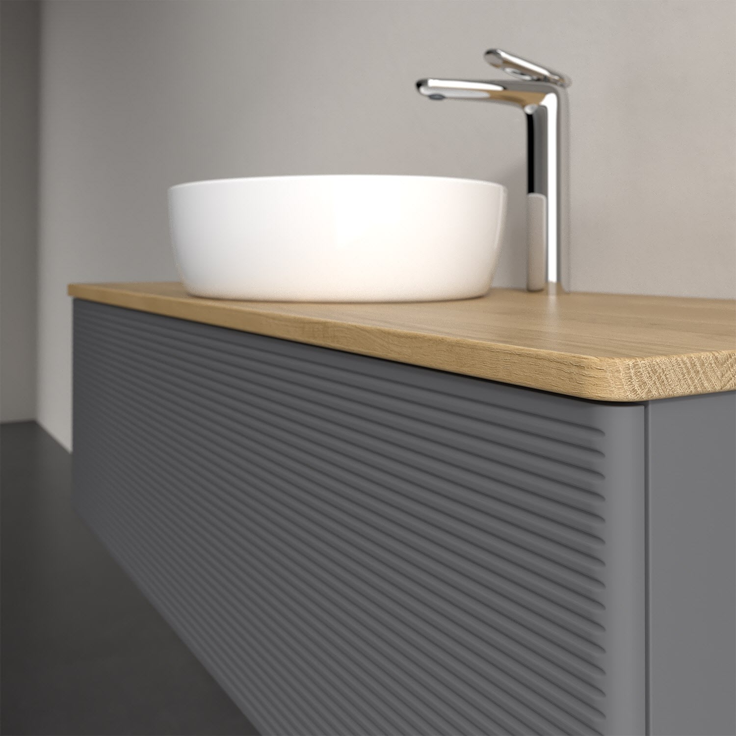 Der wandhängende Antao Waschtischunterschrank von Villeroy & Boch bietet nicht nur jede Menge Stauraum – er ist dank seines naturinspirierten Designs mit seinen abgerundeten Kanten auch noch besonders stilvoll und schafft eine gemütliche Atmosphäre im Badezimmer. Auf der Waschtischplatte bietet sich rechts und links neben dem Waschtisch viel Platz für Zahnbürstenbecher oder Seifenspender. Ein extra hoher Auszug bietet viel Platz, um alles Notwendige zu verstauen und Ordnung zu halten. Öffnen lässt er sich durch leichten Druck auf die strukturierte Front. Dabei aktiviert sich übrigens die Auszugsbeleuchtung in angenehmem Warmweiß. Dank Vollauszug hat man immer alles im Blick und der Antirutschboden verhindert ein Umfallen oder Verrutschen der Gegenstände. Einfach clever! Für eine besonders leichte Pflege sorgt die mehrschichtig deckend lackierte Oberfläche. Bei der Ausführung in Massivholz wird dank des verarbeiteten Massivholzes jedes Möbel zu einem Unikat, das sich durch das lebendige Naturmaterial durch seine einzigartige Struktur und Maserung auszeichnet.