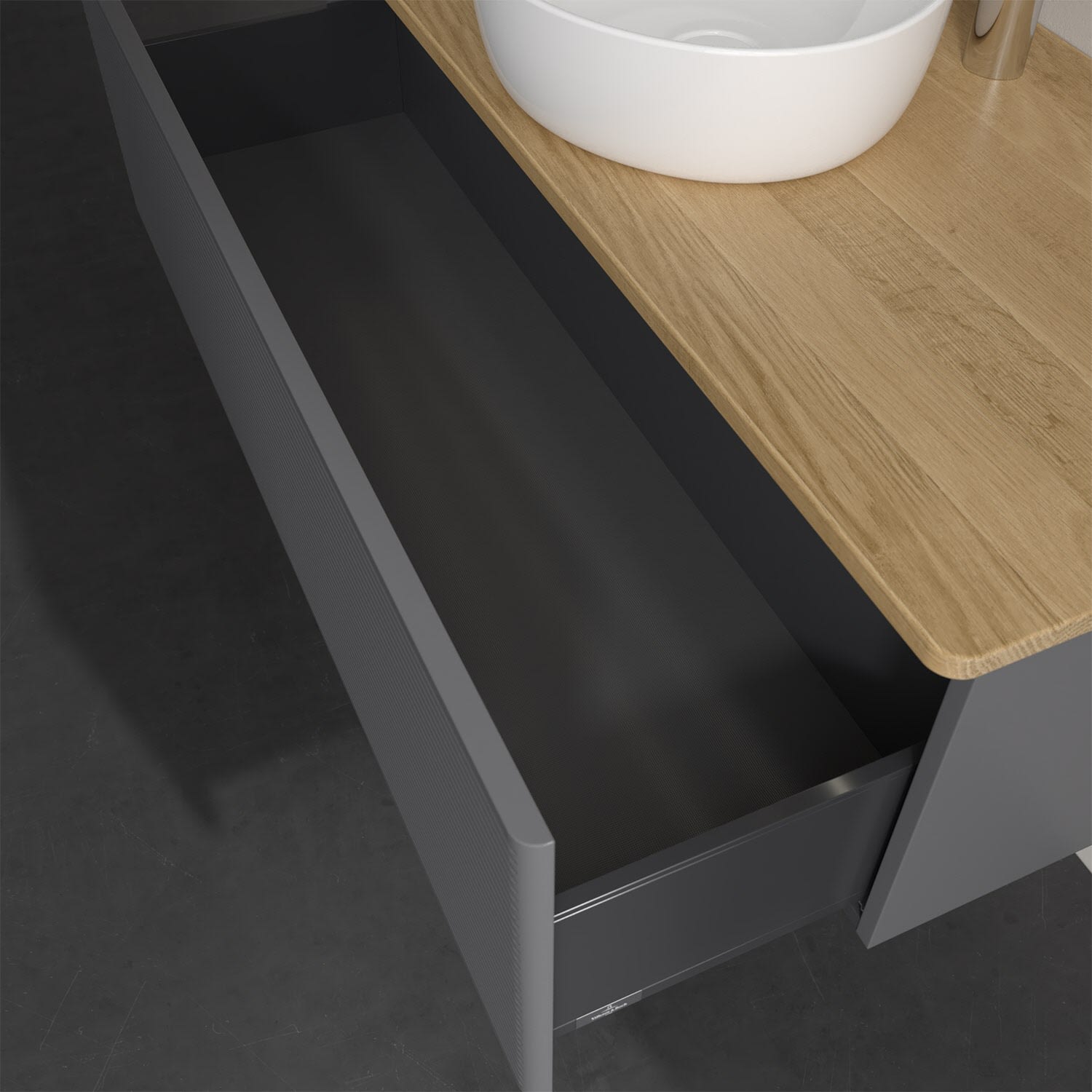 - kein Umfallen oder Verrutschen von Pflegeprodukten in den Schubladen dank rutschhemmendem Boden
