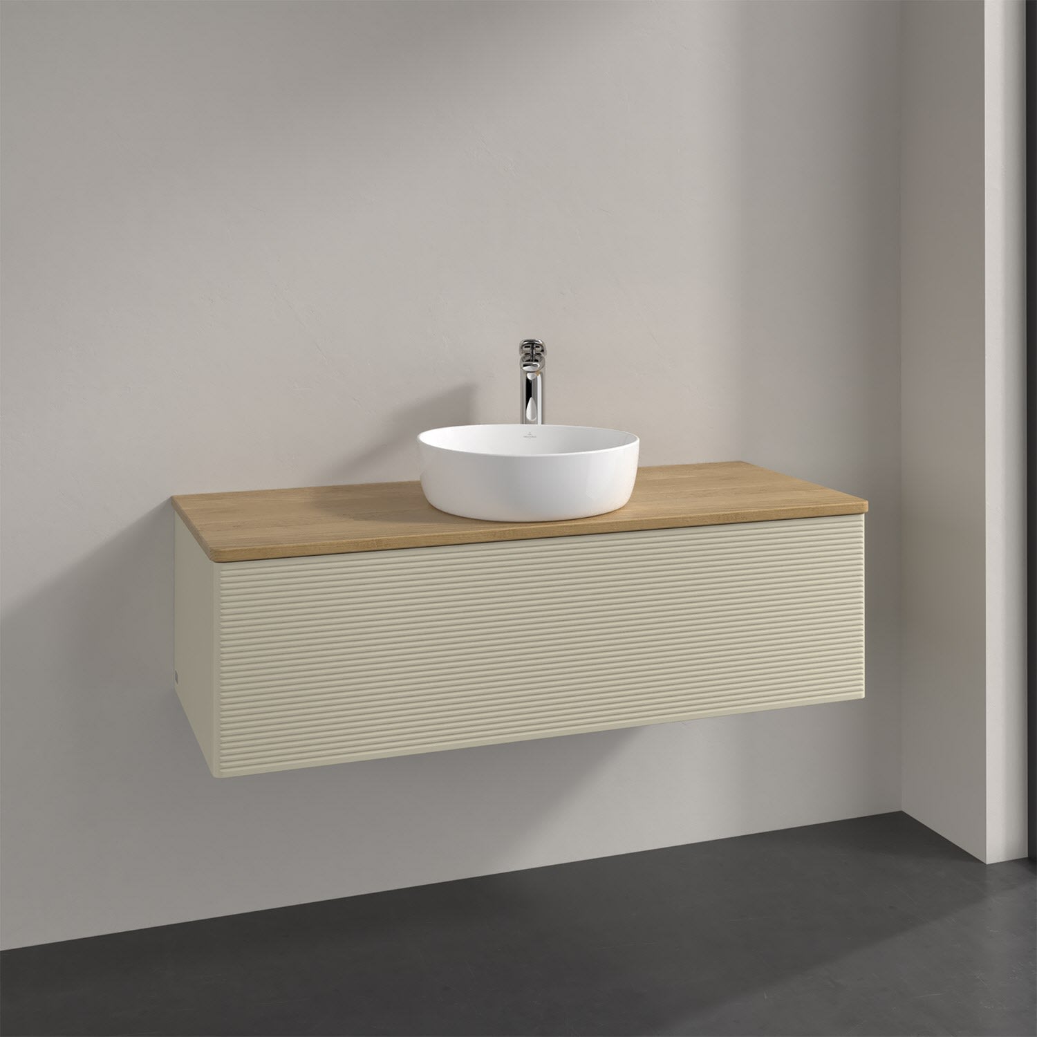Villeroy & Boch Antao Waschbeckenunterschrank, 120 x 36 cm, 1 Auszug mit LED-Licht, Front mit Struktur, mit Hahnloch, für Waschtisch mittig