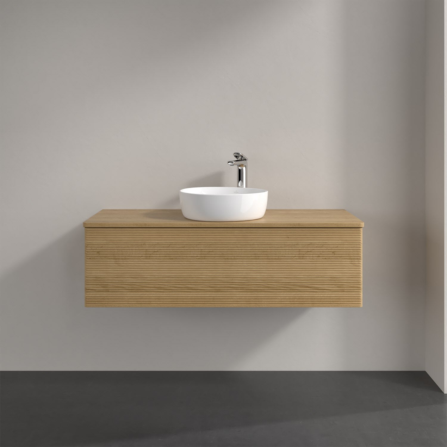 Villeroy & Boch Antao Waschbeckenunterschrank, 120 x 36 cm, 1 Auszug mit LED-Licht, Front mit Struktur, mit Hahnloch, für Waschtisch mittig