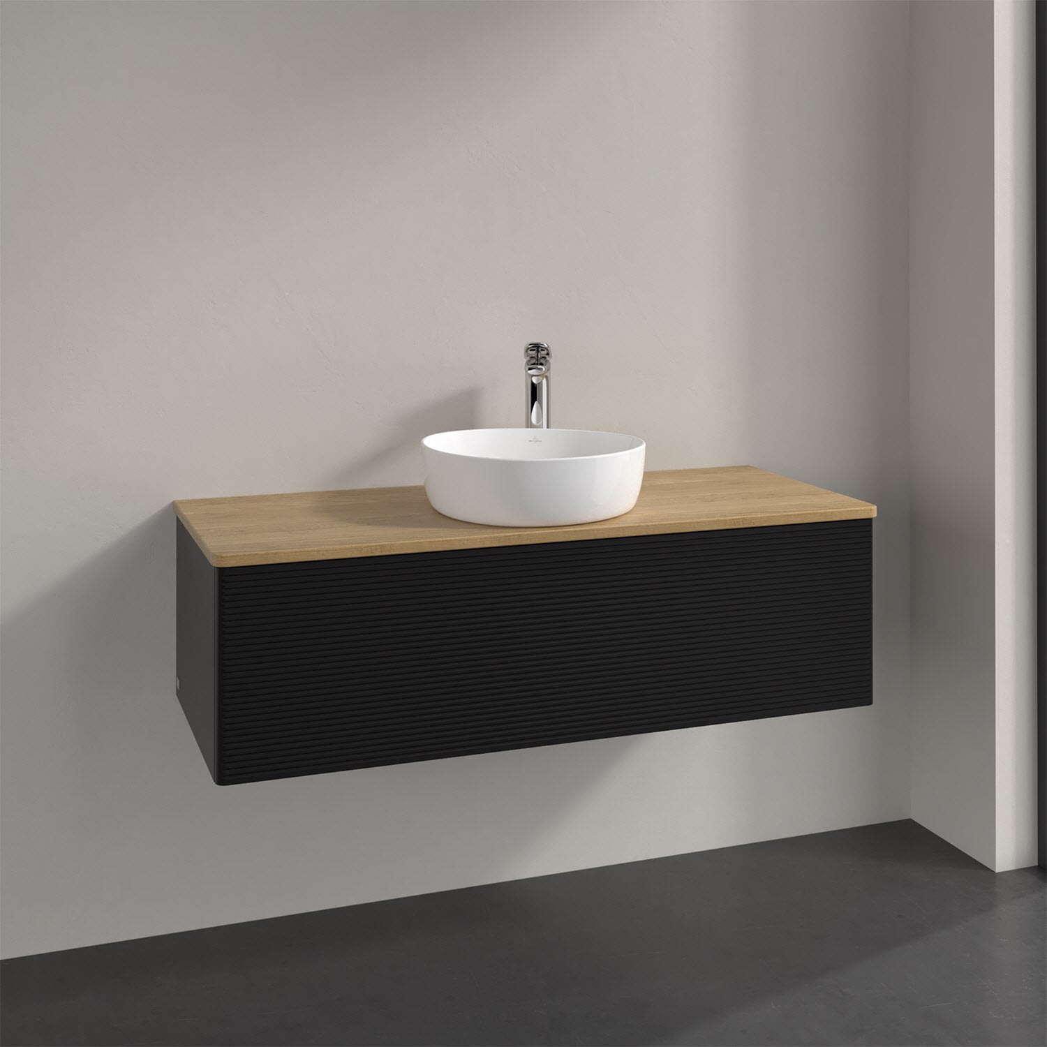 Villeroy & Boch Antao Waschbeckenunterschrank, 120 x 36 cm, 1 Auszug mit LED-Licht, Front mit Struktur, mit Hahnloch, für Waschtisch mittig