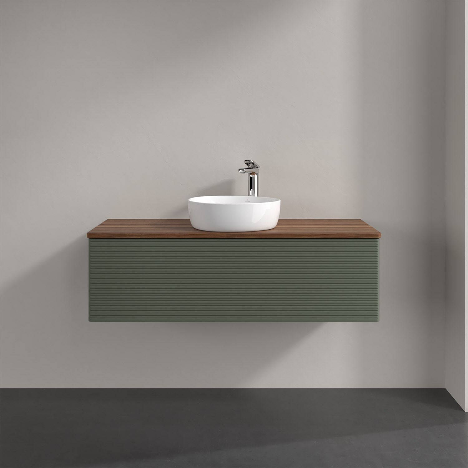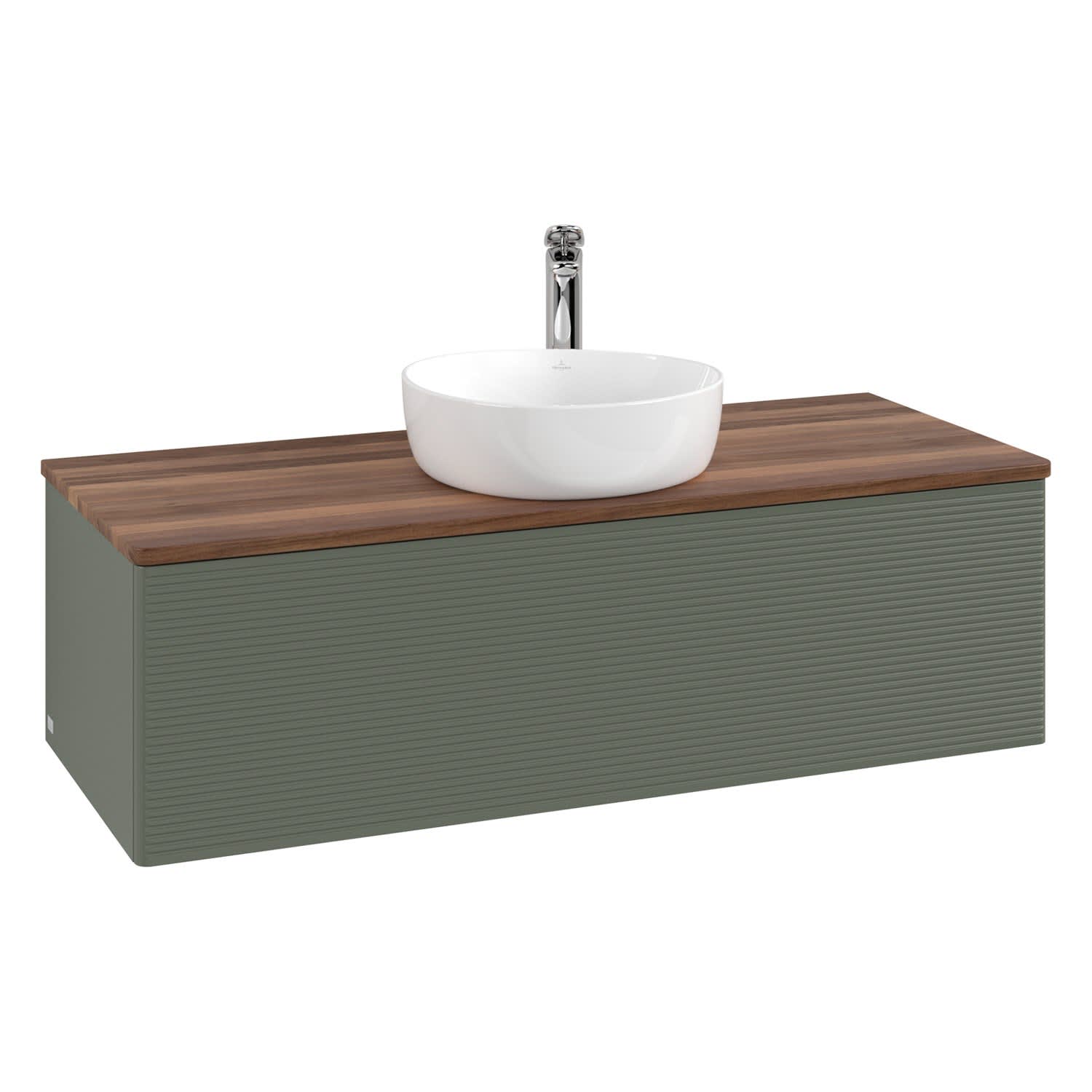 Villeroy & Boch Antao Waschbeckenunterschrank, 120 x 36 cm, 1 Auszug mit LED-Licht, Front mit Struktur, mit Hahnloch, für Waschtisch mittig