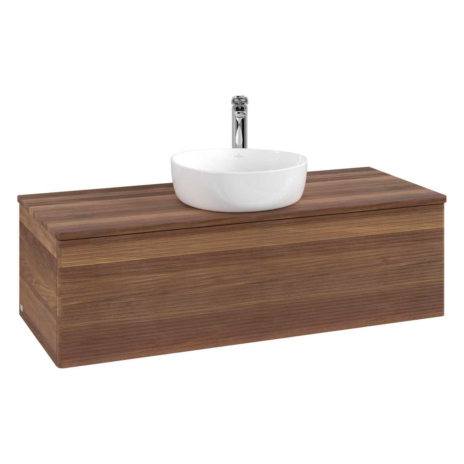Villeroy & Boch Antao Waschbeckenunterschrank, 120 x 36 cm, 1 Auszug mit LED-Licht, Front mit Struktur, mit Hahnloch, für Waschtisch mittig