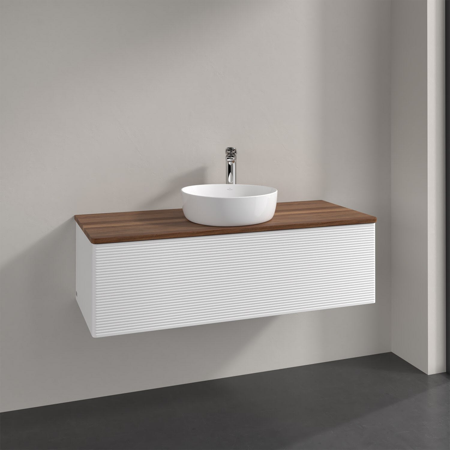 Villeroy & Boch Antao Waschbeckenunterschrank, 120 x 36 cm, 1 Auszug mit LED-Licht, Front mit Struktur, mit Hahnloch, für Waschtisch mittig