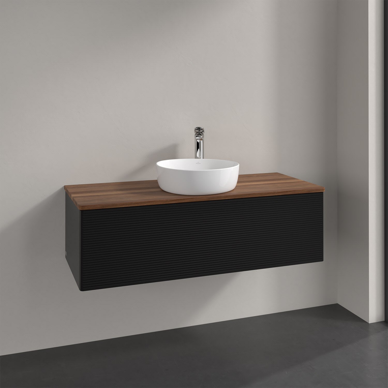 Villeroy & Boch Antao Waschbeckenunterschrank, 120 x 36 cm, 1 Auszug mit LED-Licht, Front mit Struktur, mit Hahnloch, für Waschtisch mittig