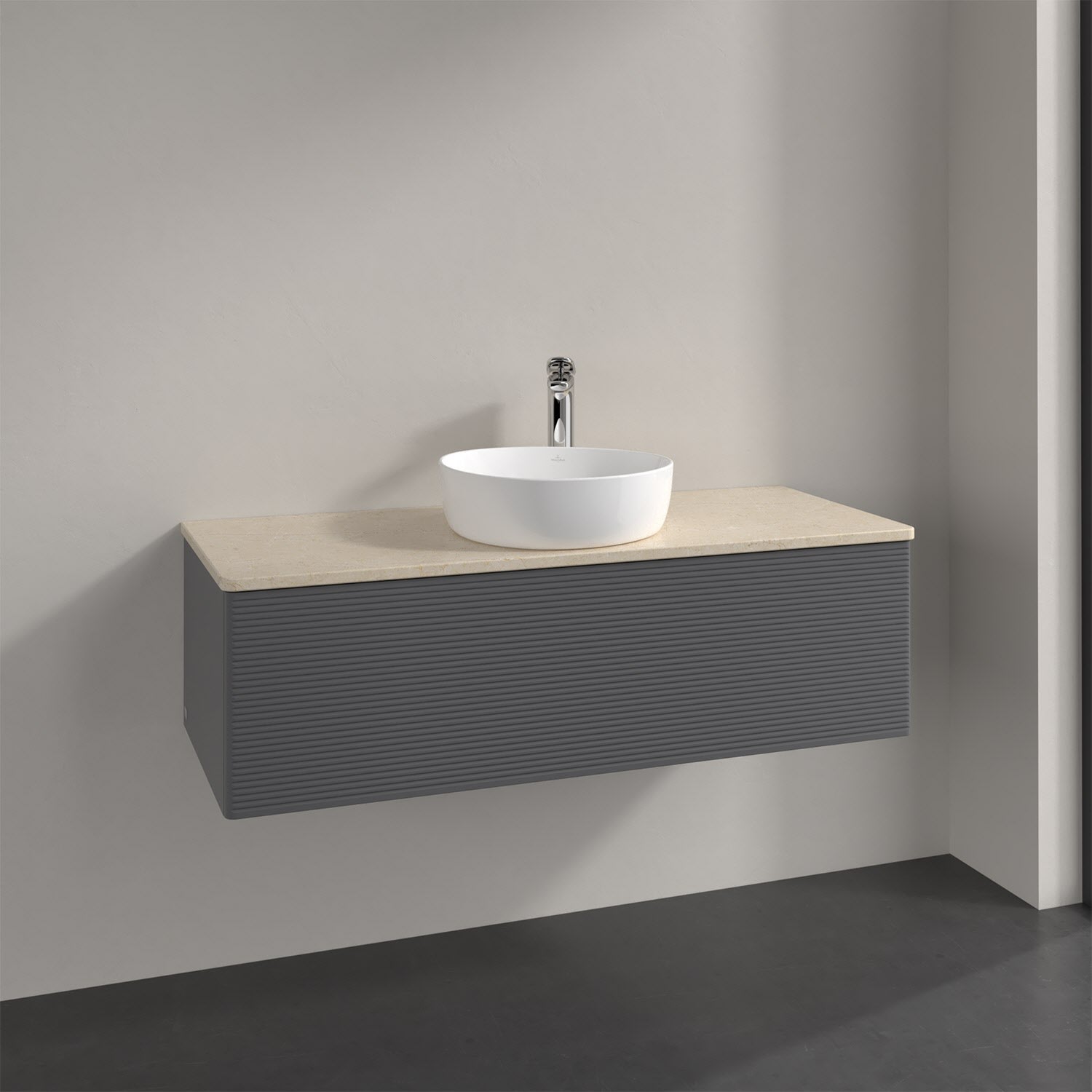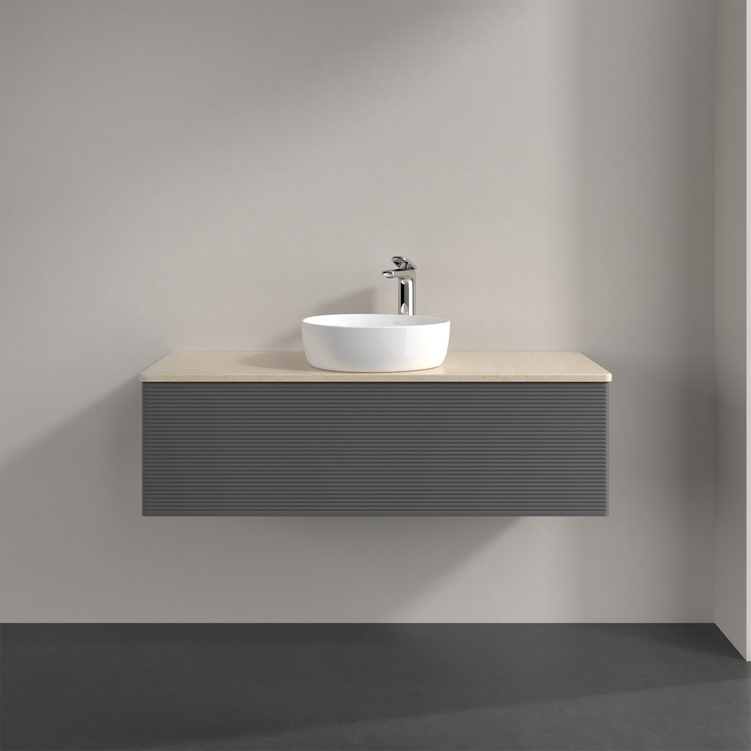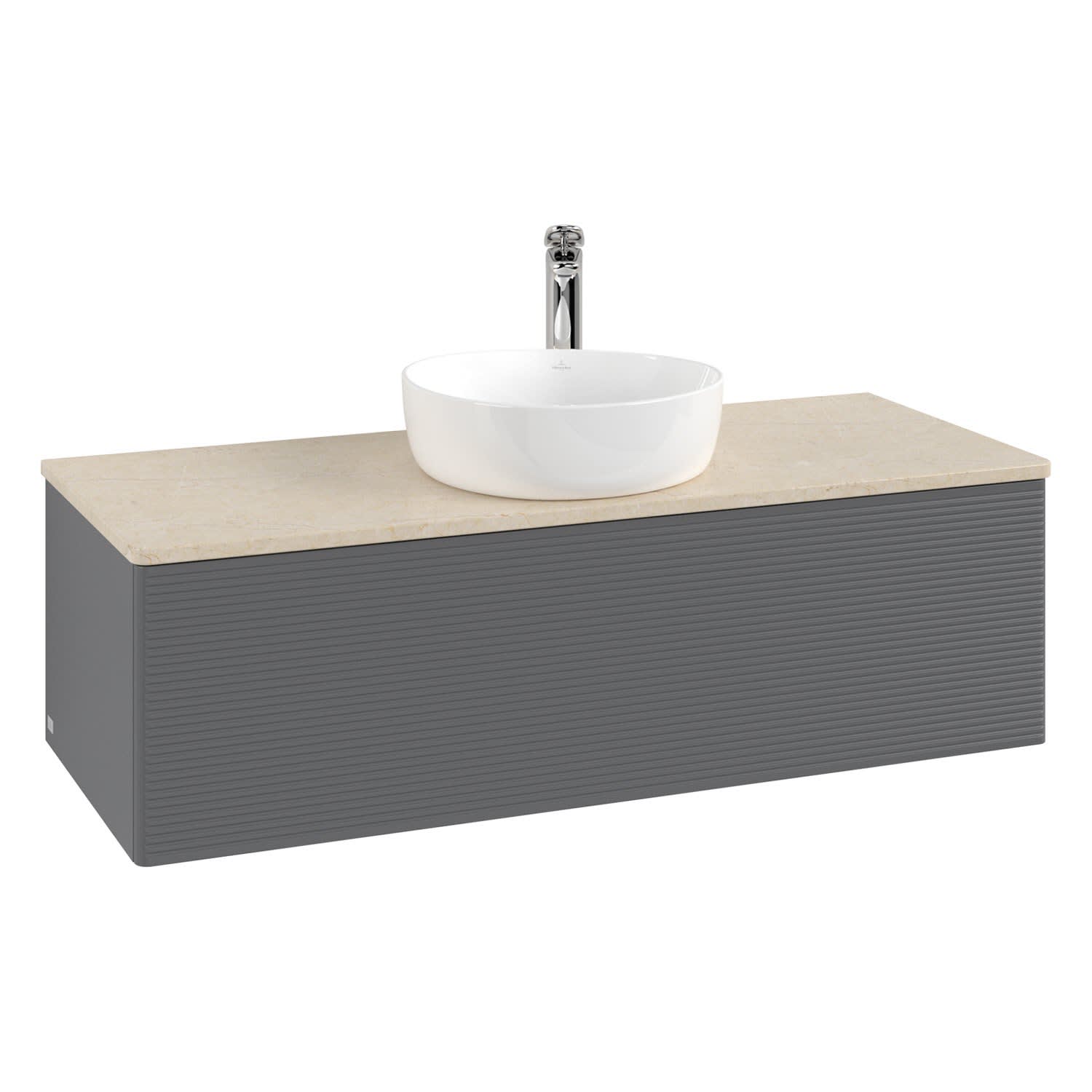 Villeroy & Boch Antao Waschbeckenunterschrank, 120 x 36 cm, 1 Auszug mit LED-Licht, Front mit Struktur, mit Hahnloch, für Waschtisch mittig