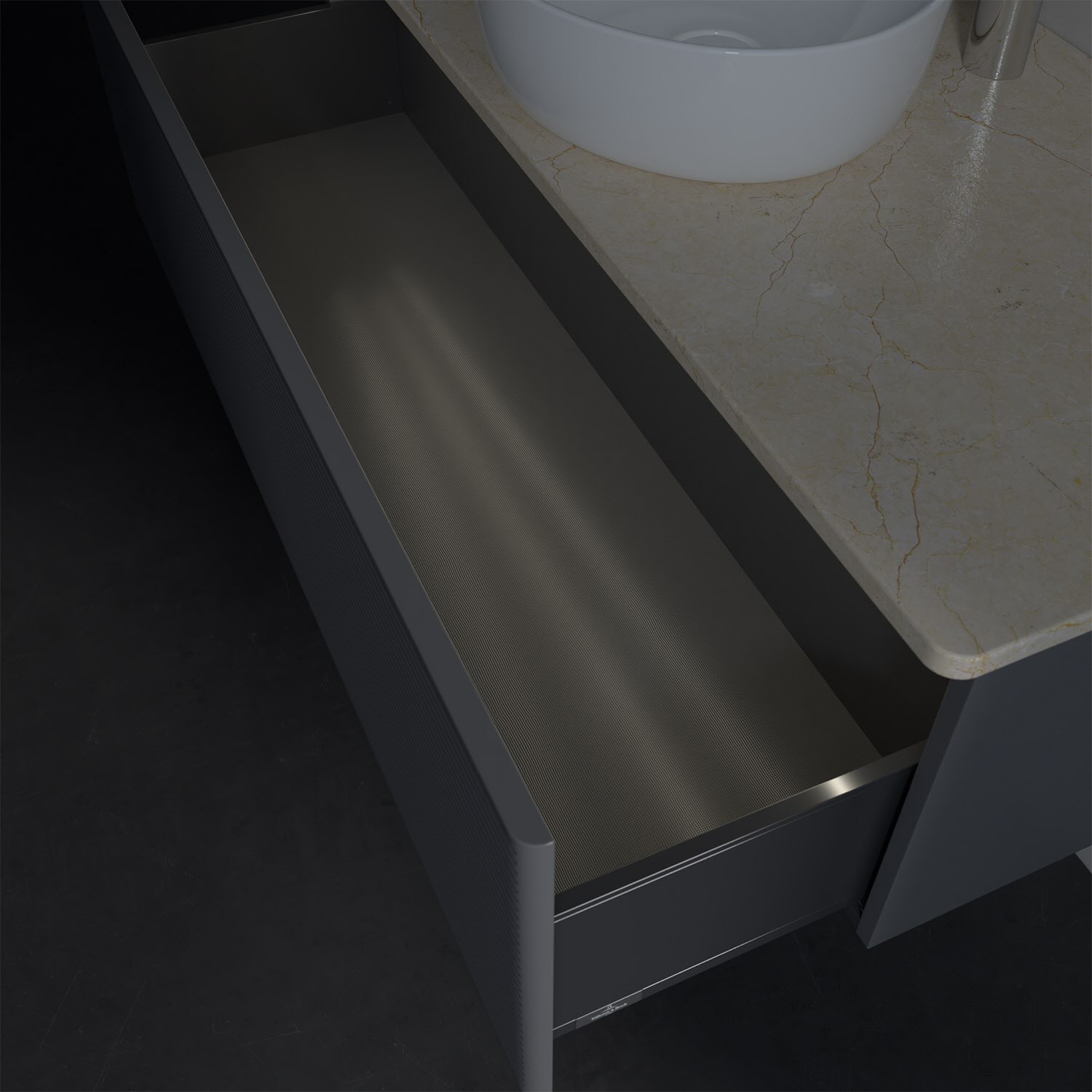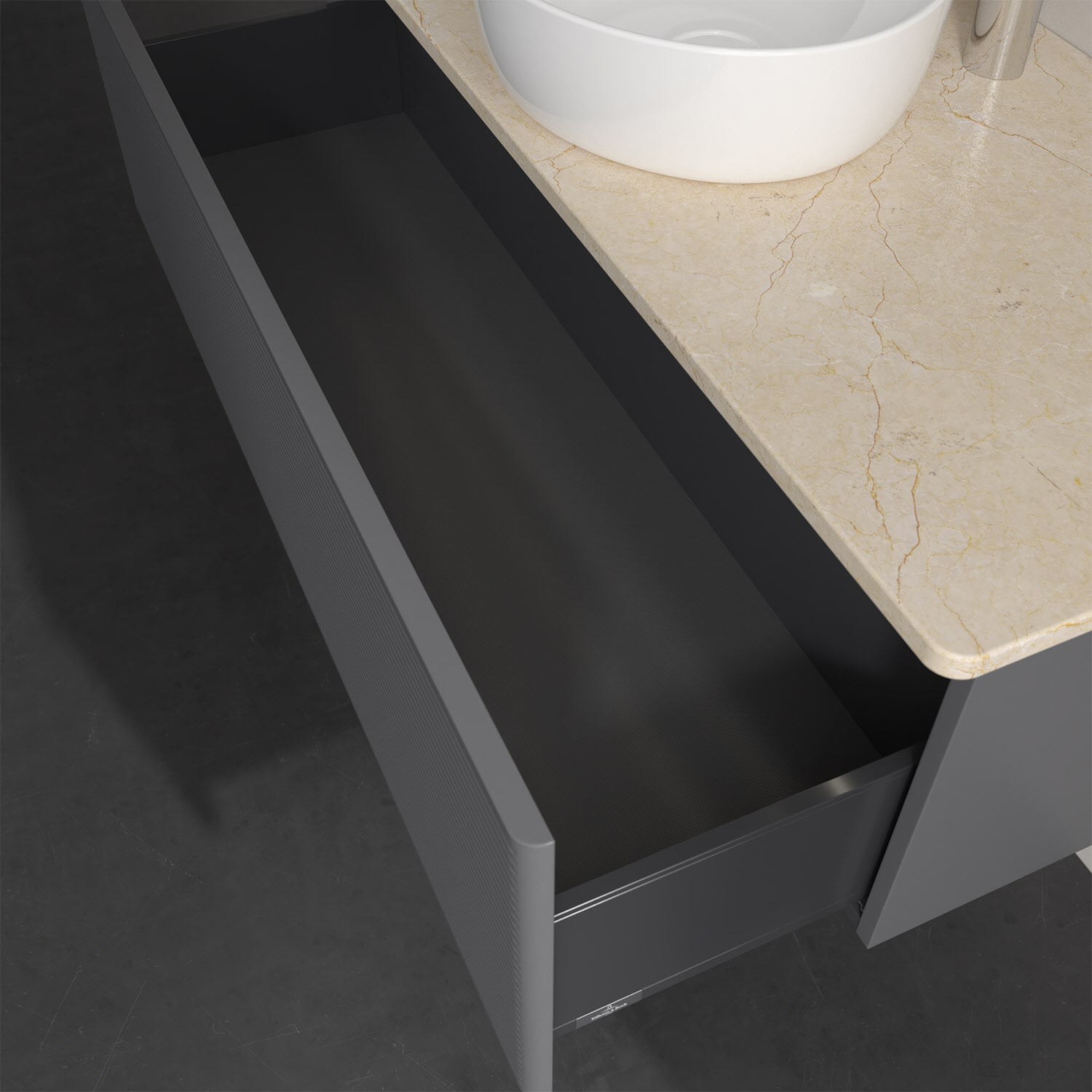 - kein Umfallen oder Verrutschen von Pflegeprodukten in den Schubladen dank rutschhemmendem Boden