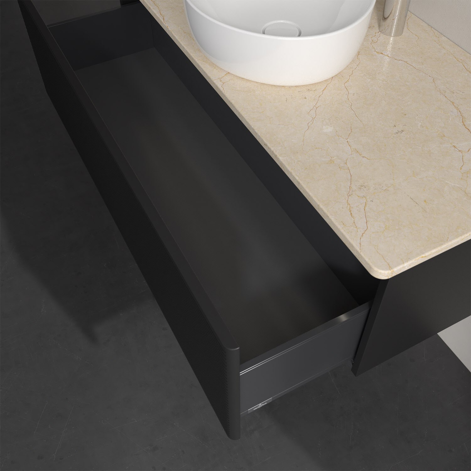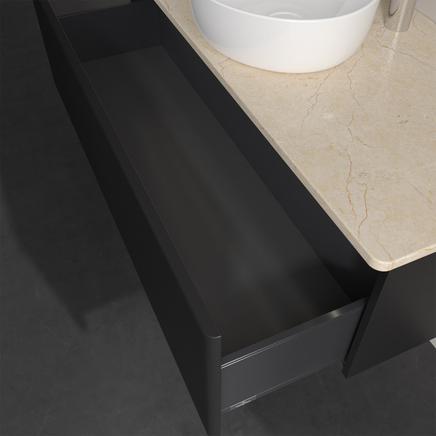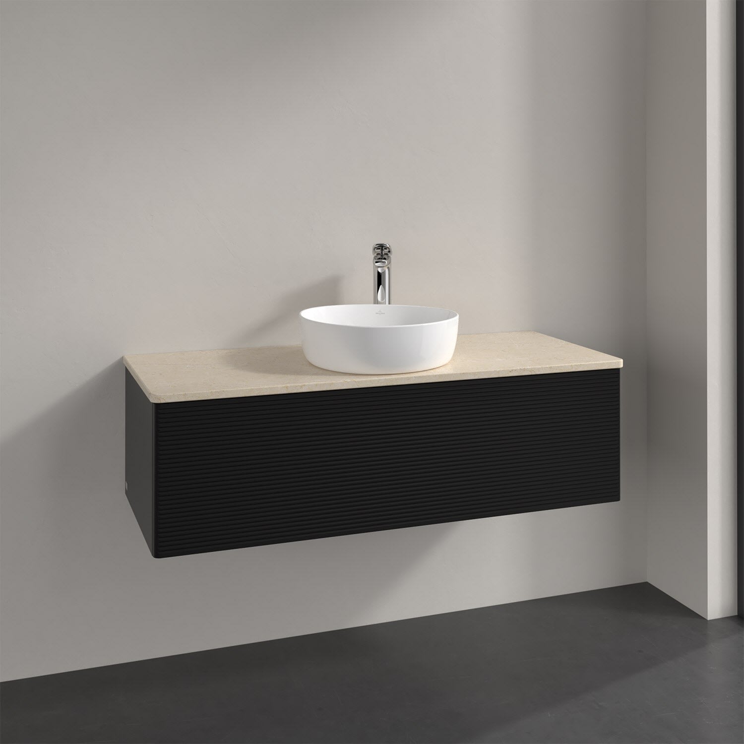 Villeroy & Boch Antao Waschbeckenunterschrank, 120 x 36 cm, 1 Auszug mit LED-Licht, Front mit Struktur, mit Hahnloch, für Waschtisch mittig