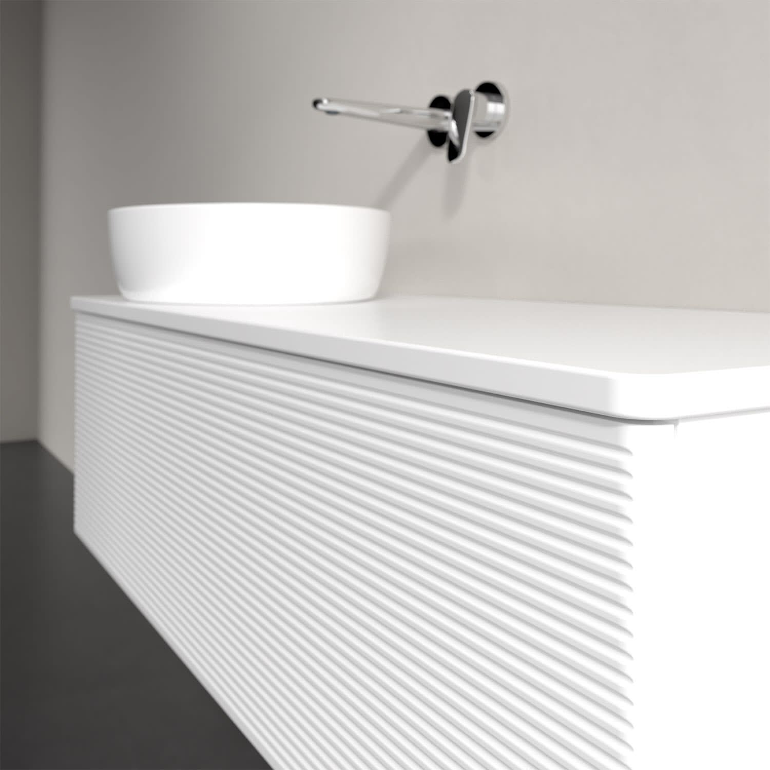 Für diesen Waschbeckenunterschrank stehen Ihnen Aufsatzwaschtische aus verschiedenen Serien zur Verfügung (siehe "Passliste" unter Downloads). Ein ausgewähltes Beispiel finden Sie im Zubehör. Den Waschtisch bitte separat mitbestellen.