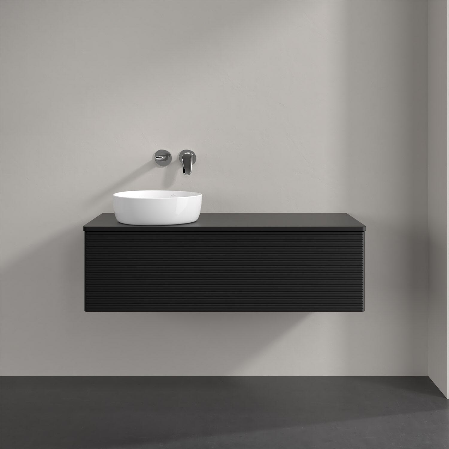 Villeroy & Boch Antao Waschbeckenunterschrank, 120 x 36 cm, 1 Auszug mit LED-Licht, Front mit Struktur, mit Hahnloch, für Waschtisch links