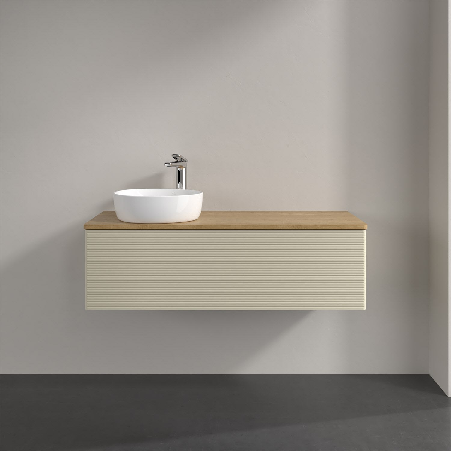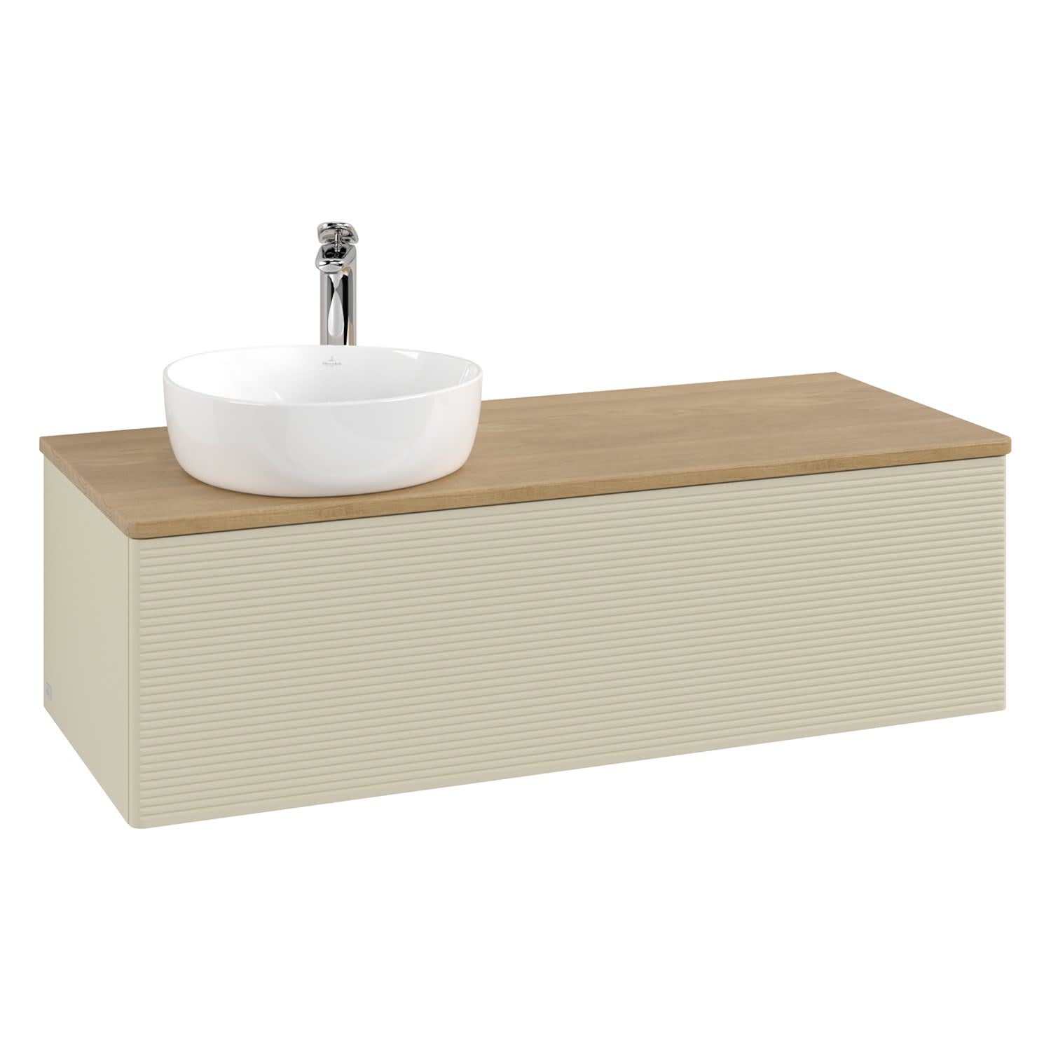 Villeroy & Boch Antao Waschbeckenunterschrank, 120 x 36 cm, 1 Auszug mit LED-Licht, Front mit Struktur, mit Hahnloch, für Waschtisch links