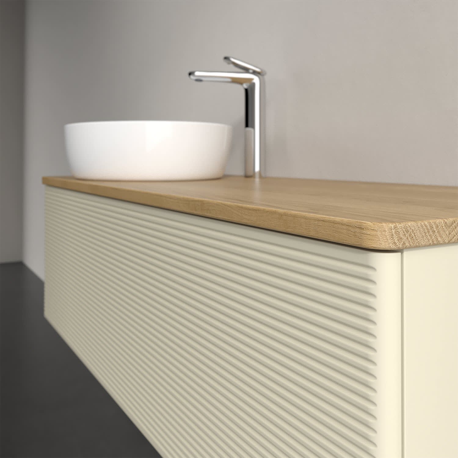Für diesen Waschbeckenunterschrank stehen Ihnen Aufsatzwaschtische aus verschiedenen Serien zur Verfügung (siehe "Passliste" unter Downloads). Ein ausgewähltes Beispiel finden Sie im Zubehör. Den Waschtisch bitte separat mitbestellen.