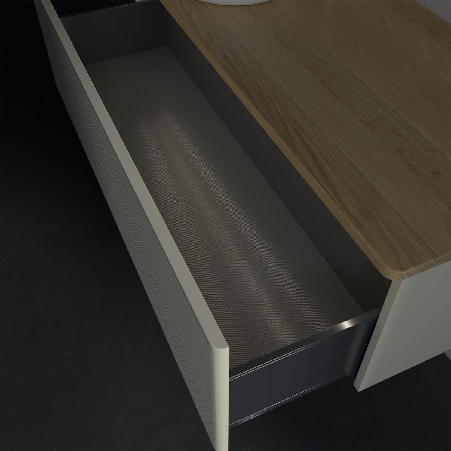 - kein Umfallen oder Verrutschen von Pflegeprodukten in den Schubladen dank rutschhemmendem Boden