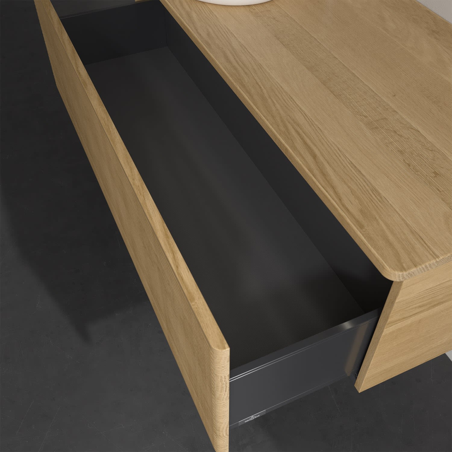 - kein Umfallen oder Verrutschen von Pflegeprodukten in den Schubladen dank rutschhemmendem Boden