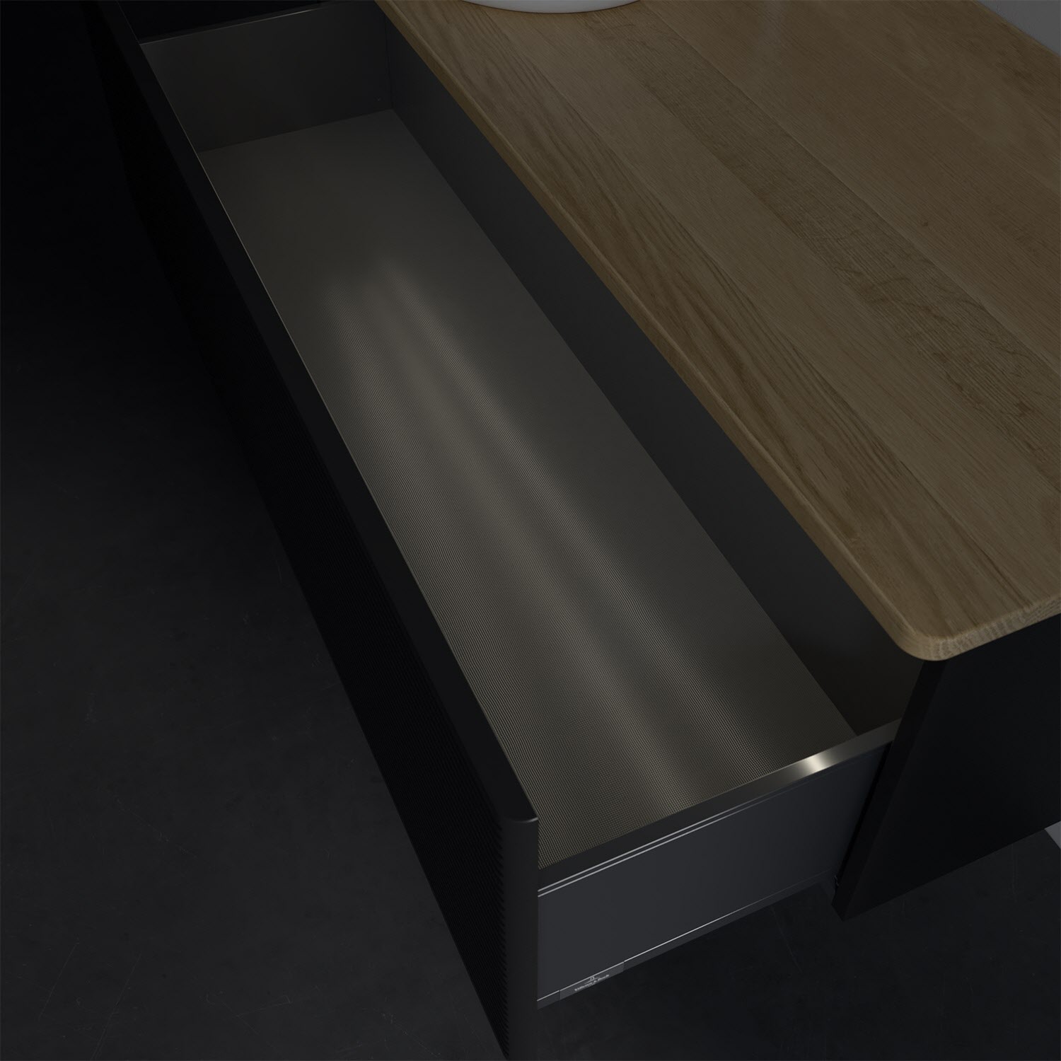 - in Schublade integrierte LED-Leiste mit warmweißem Licht zur Beleuchtung des Innenlebens