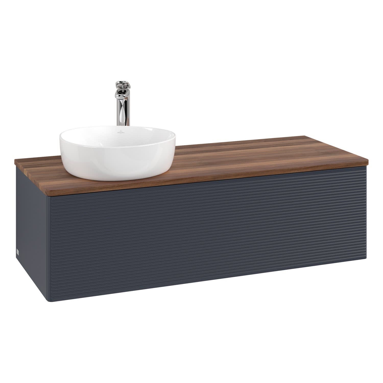 Villeroy & Boch Antao Waschbeckenunterschrank, 120 x 36 cm, 1 Auszug mit LED-Licht, Front mit Struktur, mit Hahnloch, für Waschtisch links