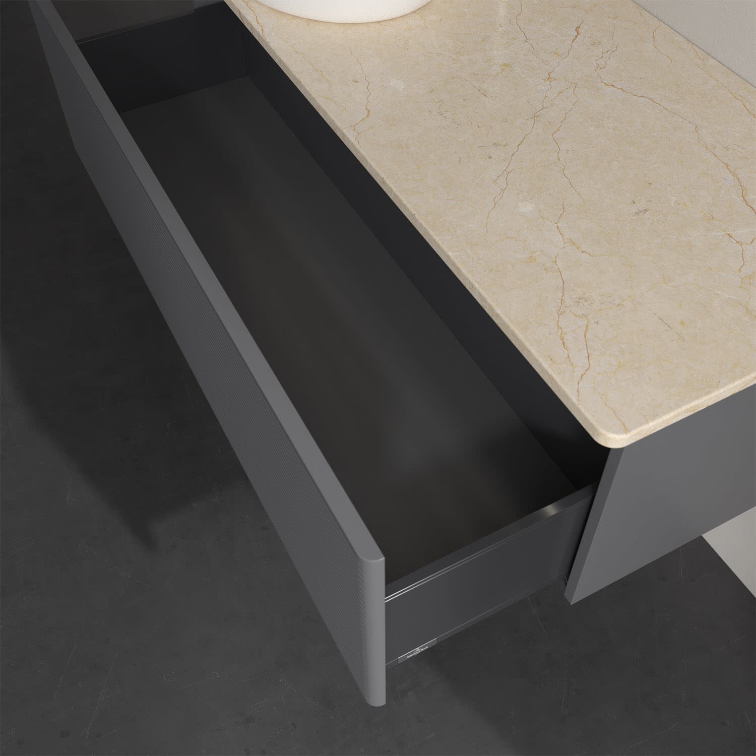 - kein Umfallen oder Verrutschen von Pflegeprodukten in den Schubladen dank rutschhemmendem Boden