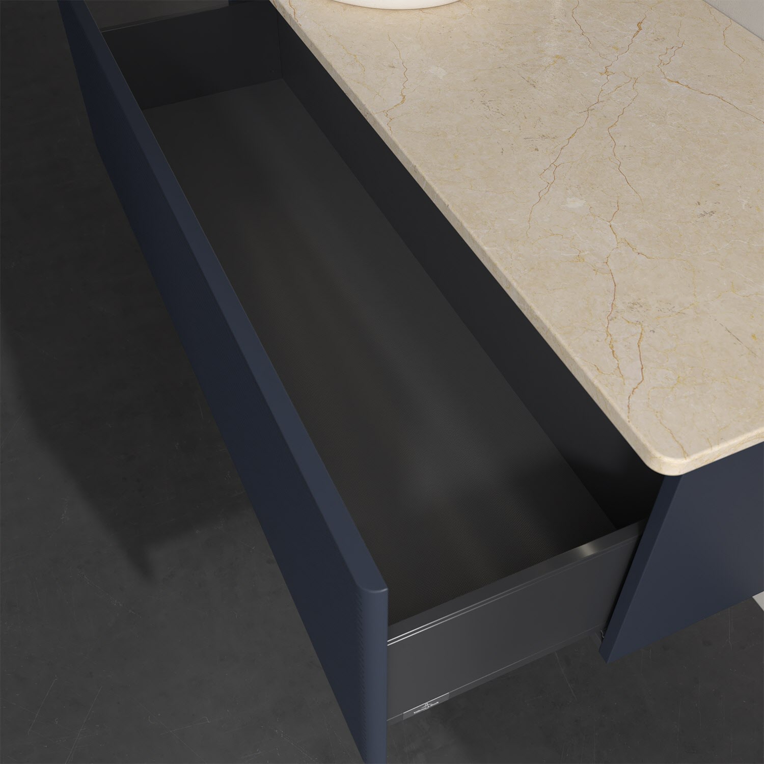 Villeroy & Boch Antao Waschbeckenunterschrank, 120 x 36 cm, 1 Auszug mit LED-Licht, Front mit Struktur, mit Hahnloch, für Waschtisch links