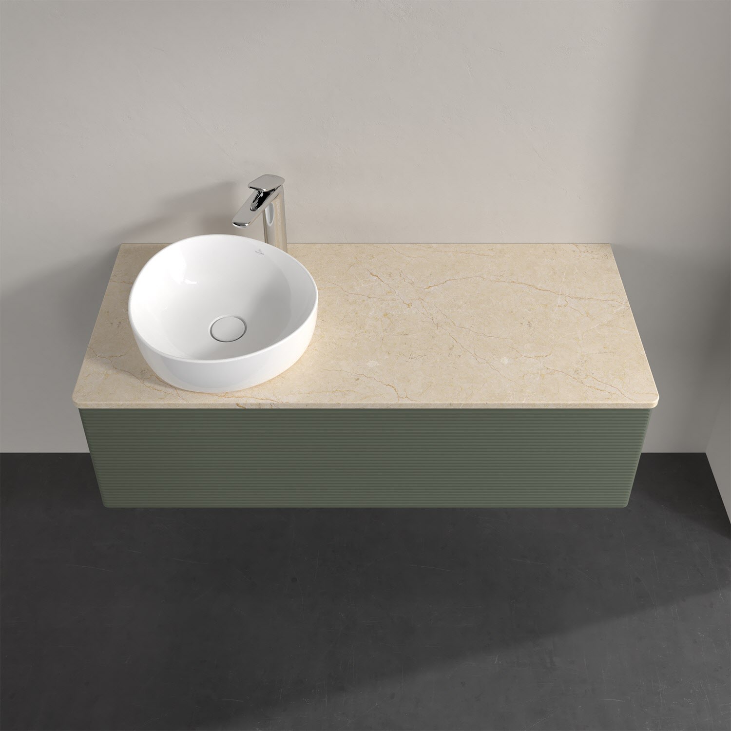 Für diesen Waschbeckenunterschrank stehen Ihnen Aufsatzwaschtische aus verschiedenen Serien zur Verfügung (siehe "Passliste" unter Downloads). Ein ausgewähltes Beispiel finden Sie im Zubehör. Den Waschtisch bitte separat mitbestellen.