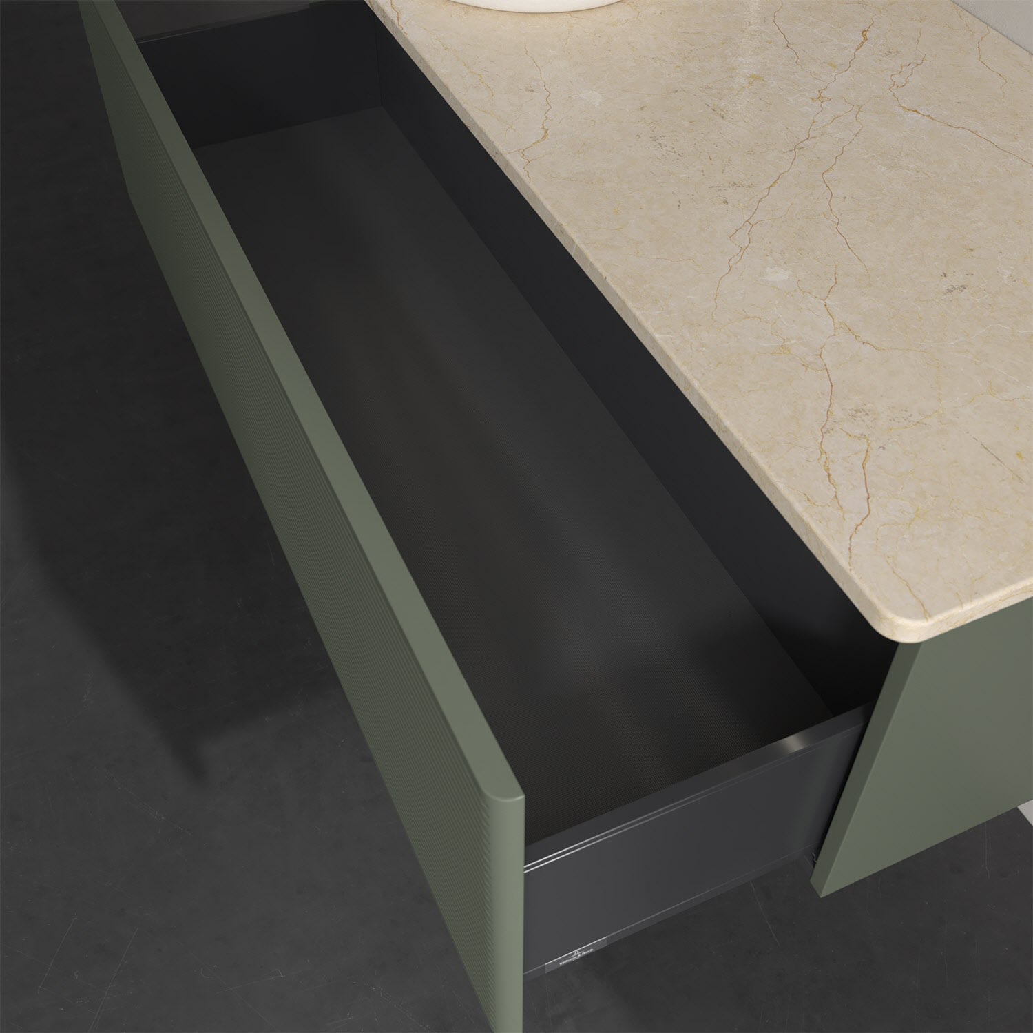 - kein Umfallen oder Verrutschen von Pflegeprodukten in den Schubladen dank rutschhemmendem Boden