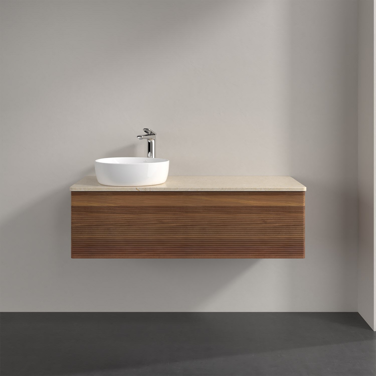 Villeroy & Boch Antao Waschbeckenunterschrank, 120 x 36 cm, 1 Auszug mit LED-Licht, Front mit Struktur, mit Hahnloch, für Waschtisch links