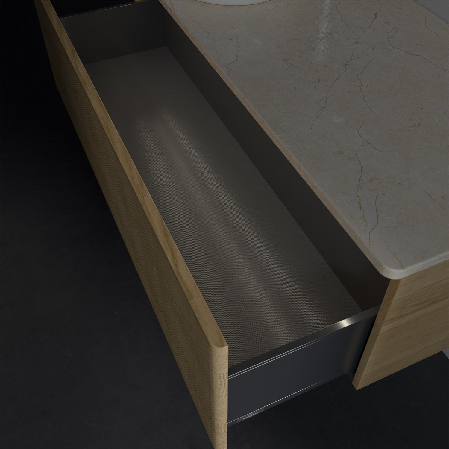 - kein Umfallen oder Verrutschen von Pflegeprodukten in den Schubladen dank rutschhemmendem Boden