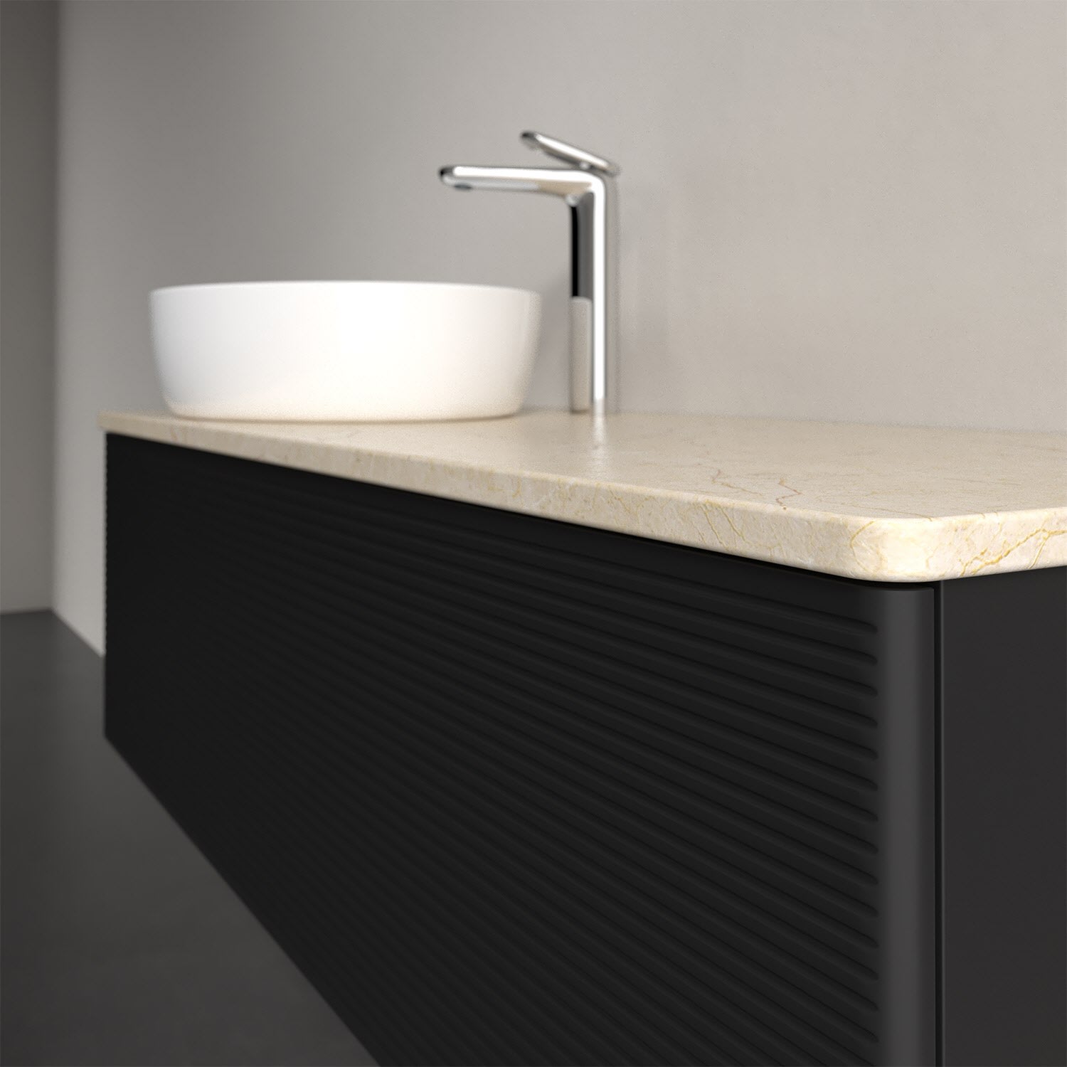 Für diesen Waschbeckenunterschrank stehen Ihnen Aufsatzwaschtische aus verschiedenen Serien zur Verfügung (siehe "Passliste" unter Downloads). Ein ausgewähltes Beispiel finden Sie im Zubehör. Den Waschtisch bitte separat mitbestellen.
