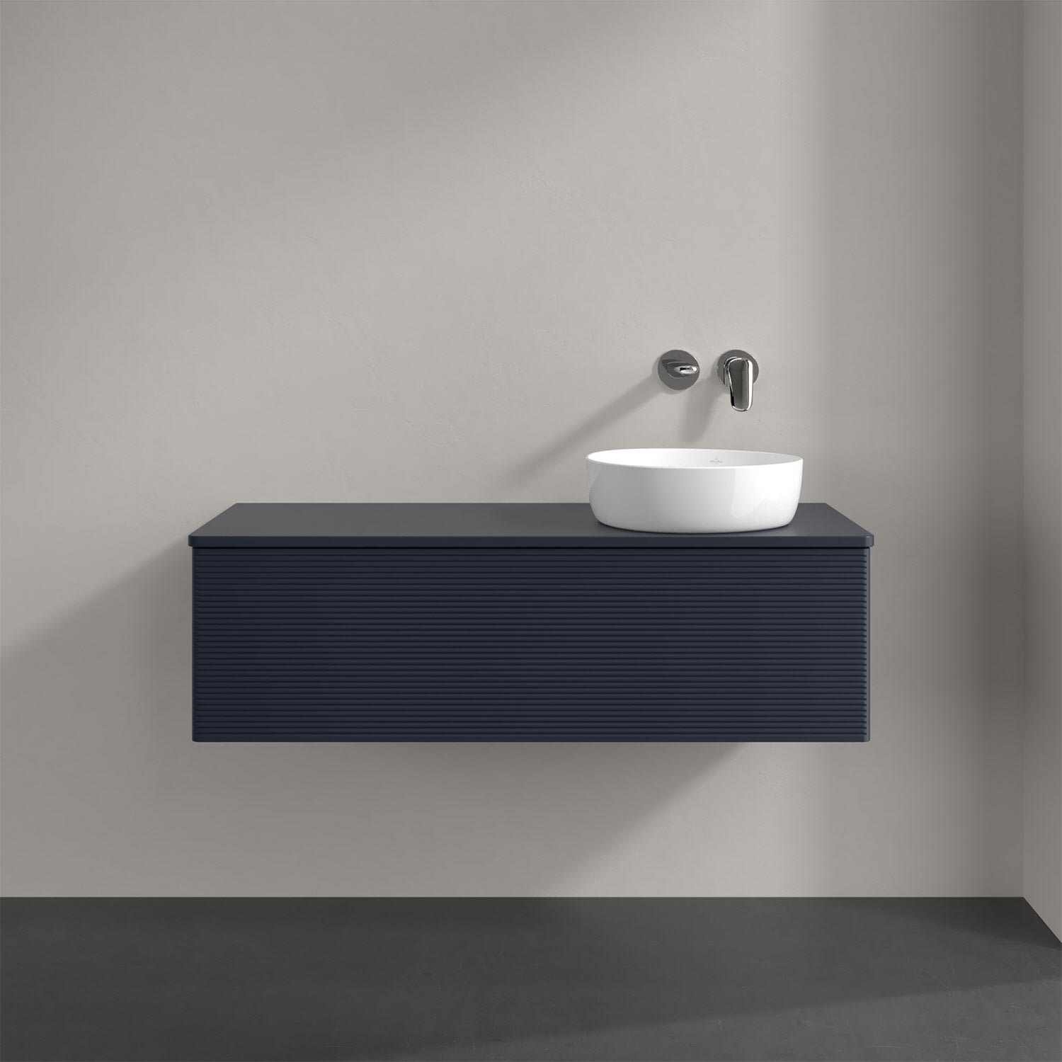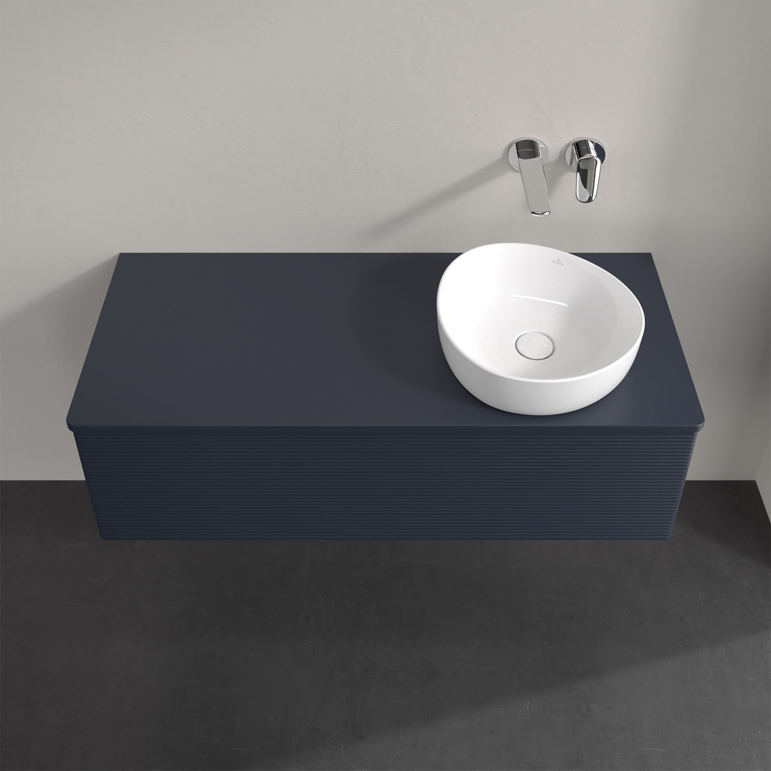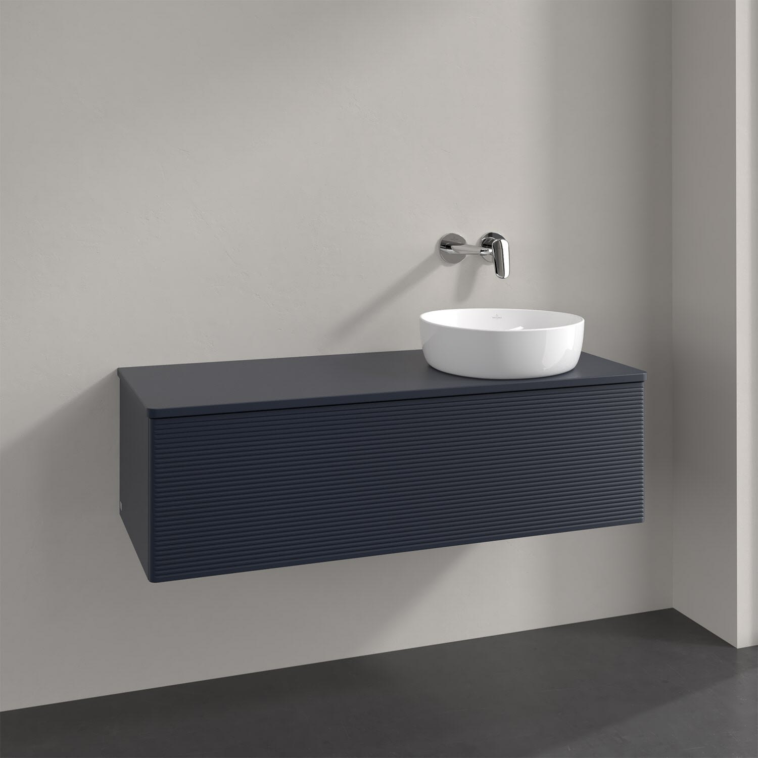 Villeroy & Boch Antao Waschbeckenunterschrank, 120 x 36 cm, 1 Auszug mit LED-Licht, Front mit Struktur, mit Hahnloch, für Waschtisch rechts