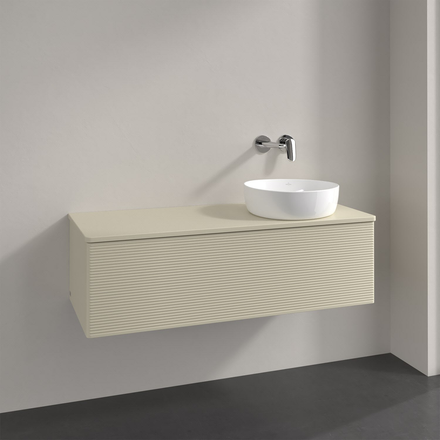 Villeroy & Boch Antao Waschbeckenunterschrank, 120 x 36 cm, 1 Auszug mit LED-Licht, Front mit Struktur, mit Hahnloch, für Waschtisch rechts