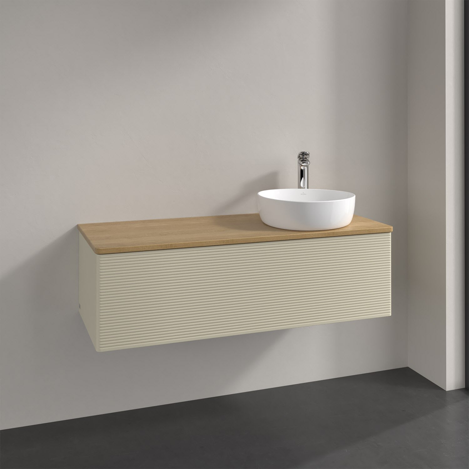 Villeroy & Boch Antao Waschbeckenunterschrank, 120 x 36 cm, 1 Auszug mit LED-Licht, Front mit Struktur, mit Hahnloch, für Waschtisch rechts